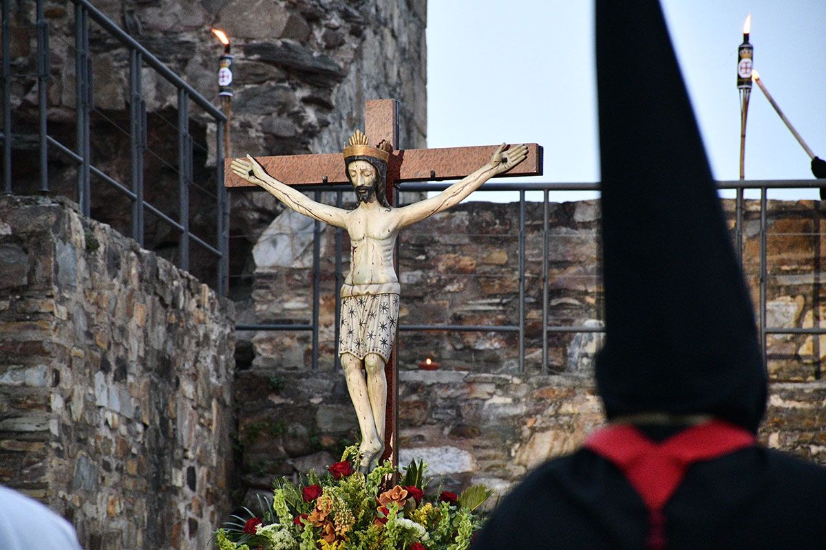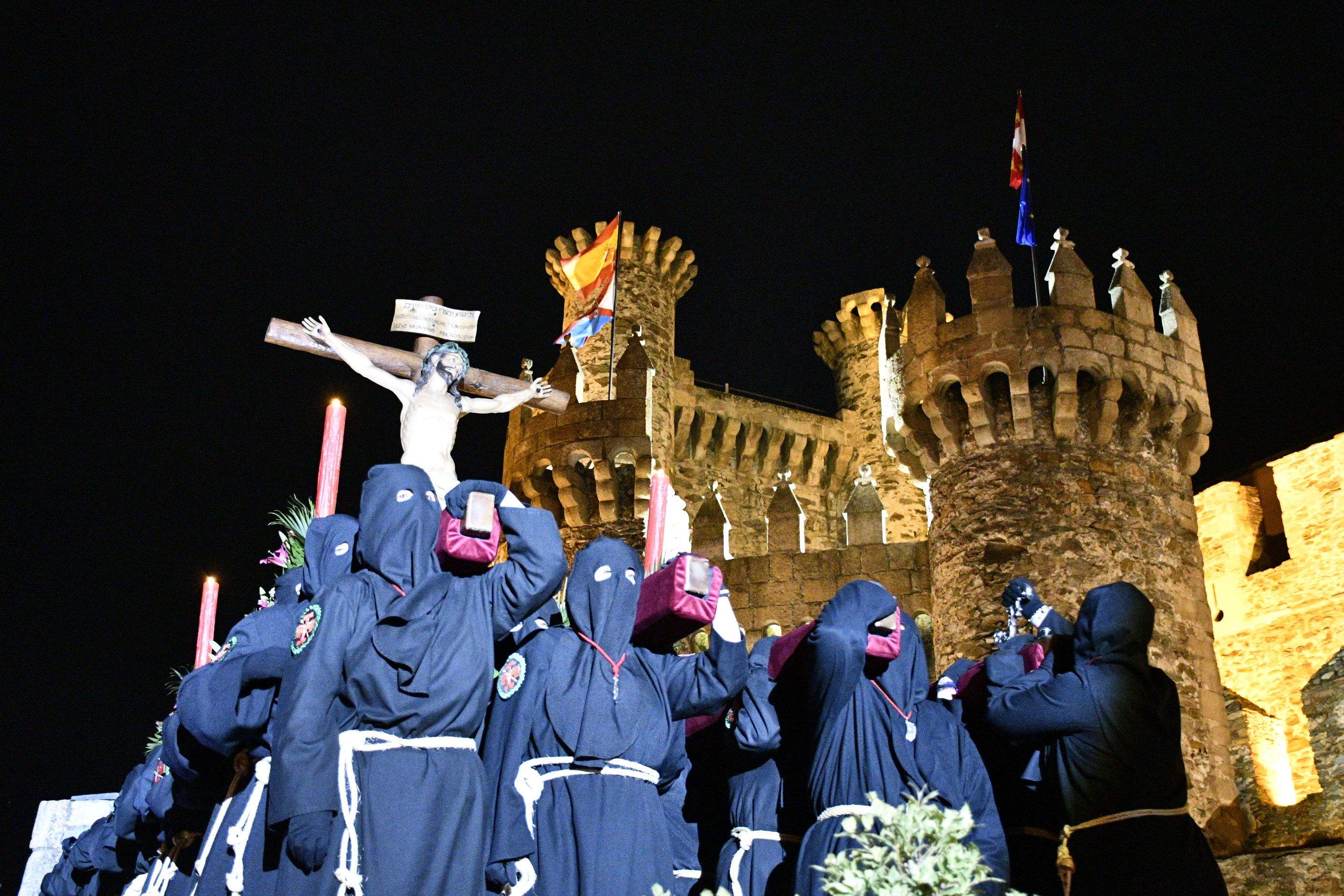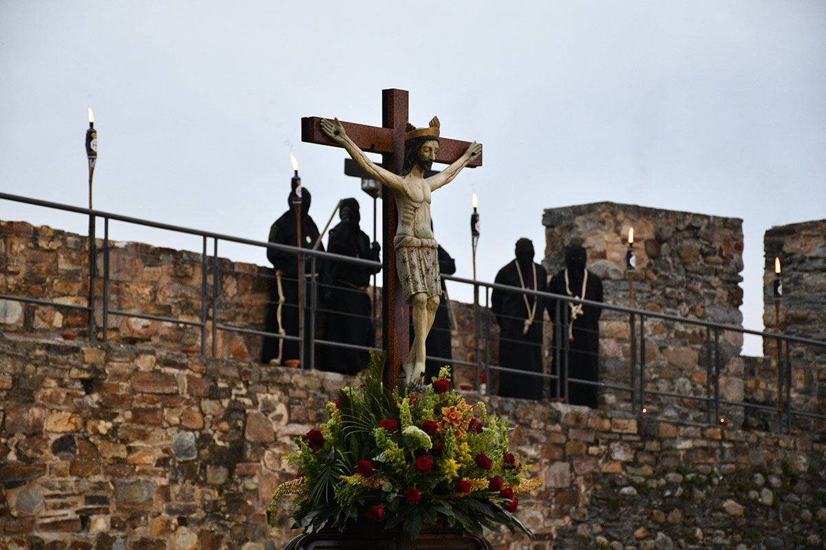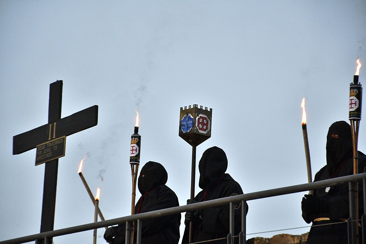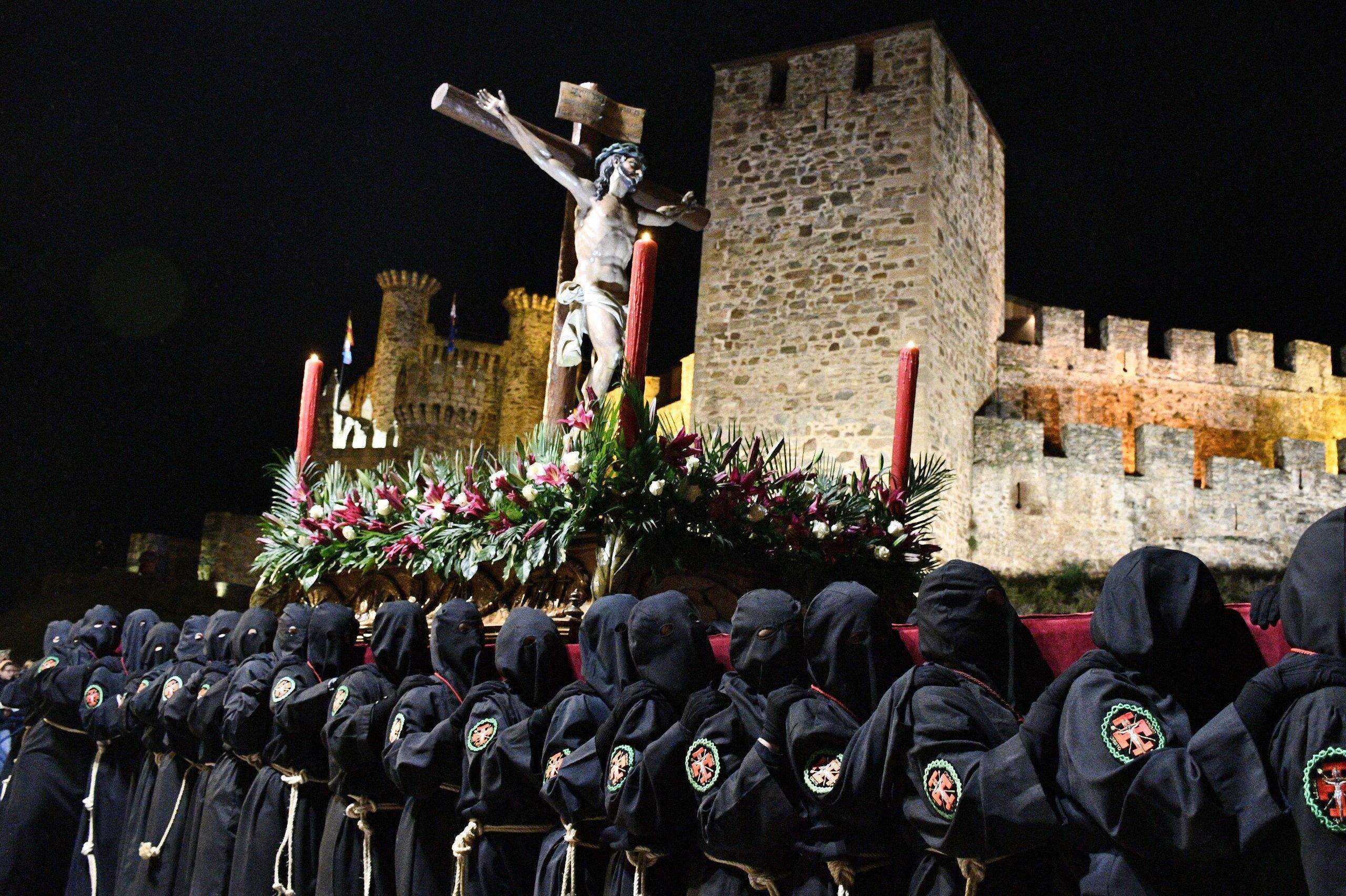 Viacrucis penitencial en el castillo de los Templarios de Ponferrada con el Cristo de la Esperanza y el Cristo de la Fortaleza
