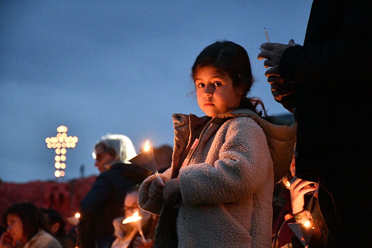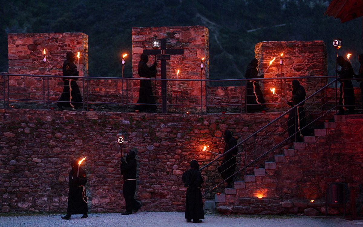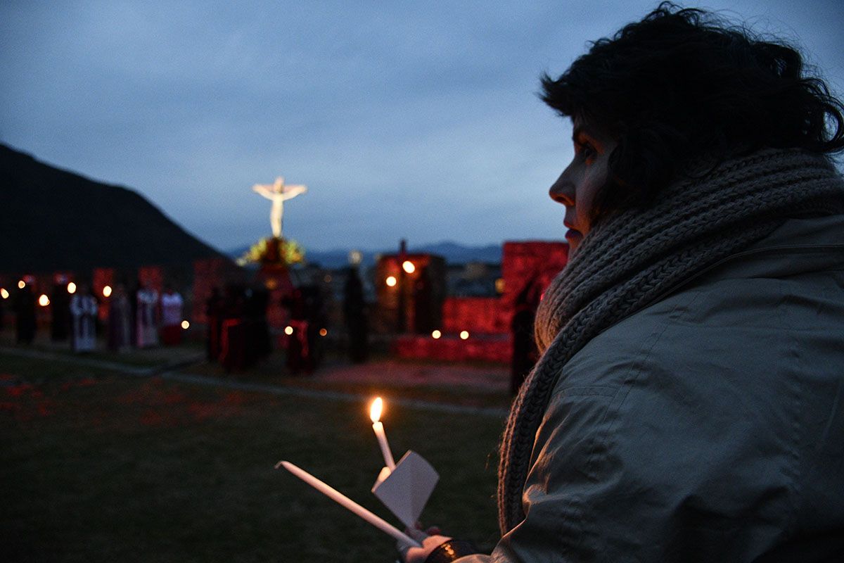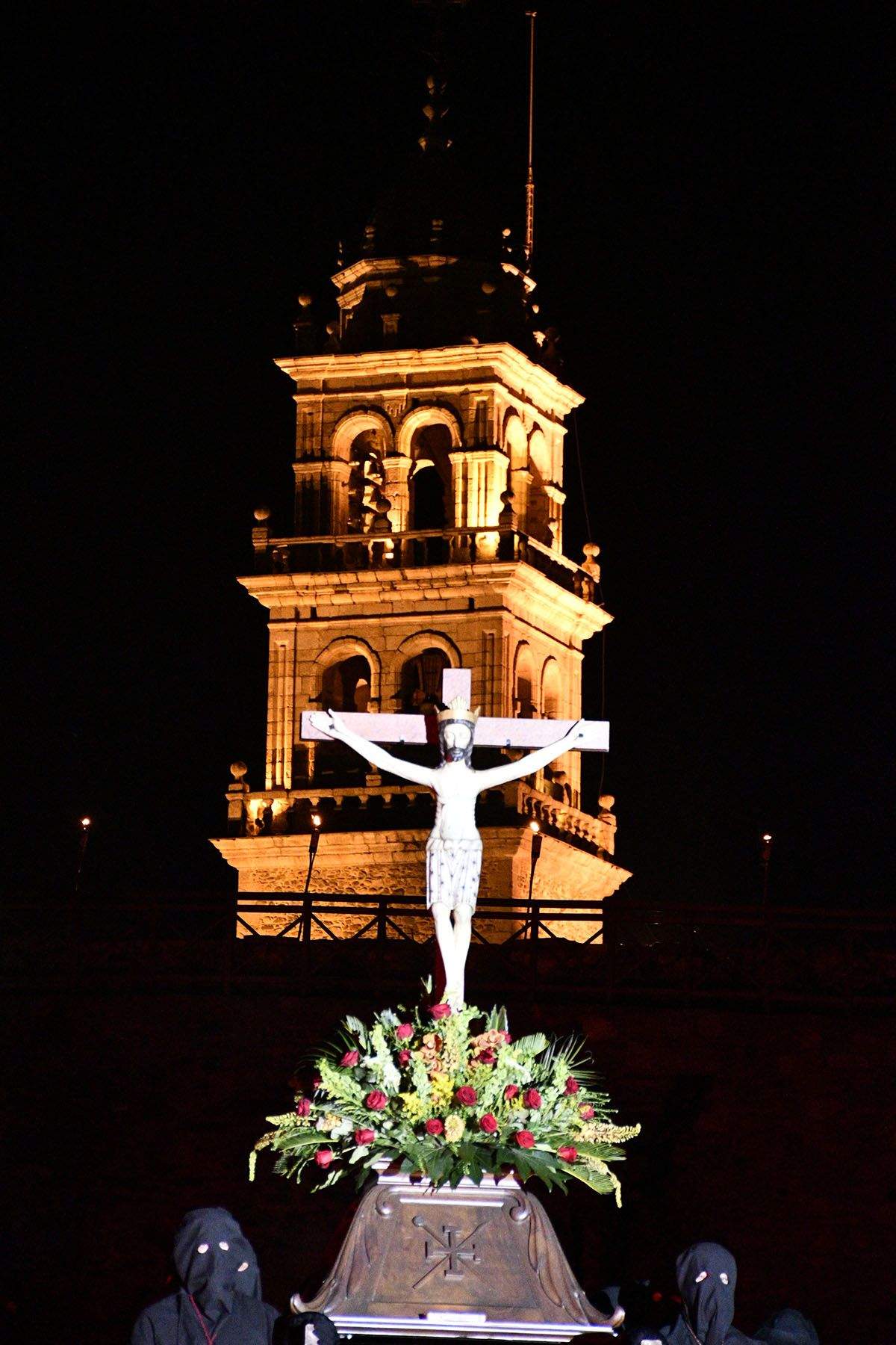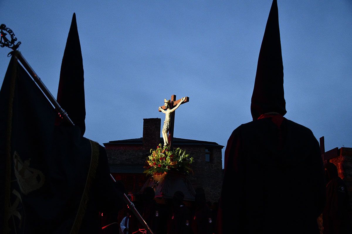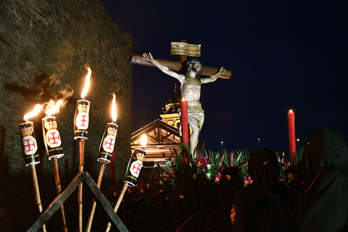 Viacrucis penitencial en el castillo de los Templarios de Ponferrada con el Cristo de la Esperanza y el Cristo de la Fortaleza