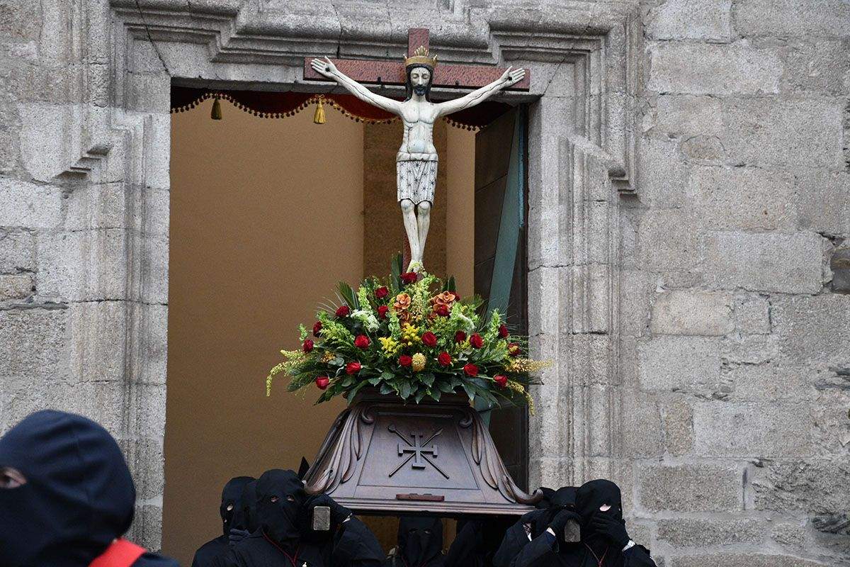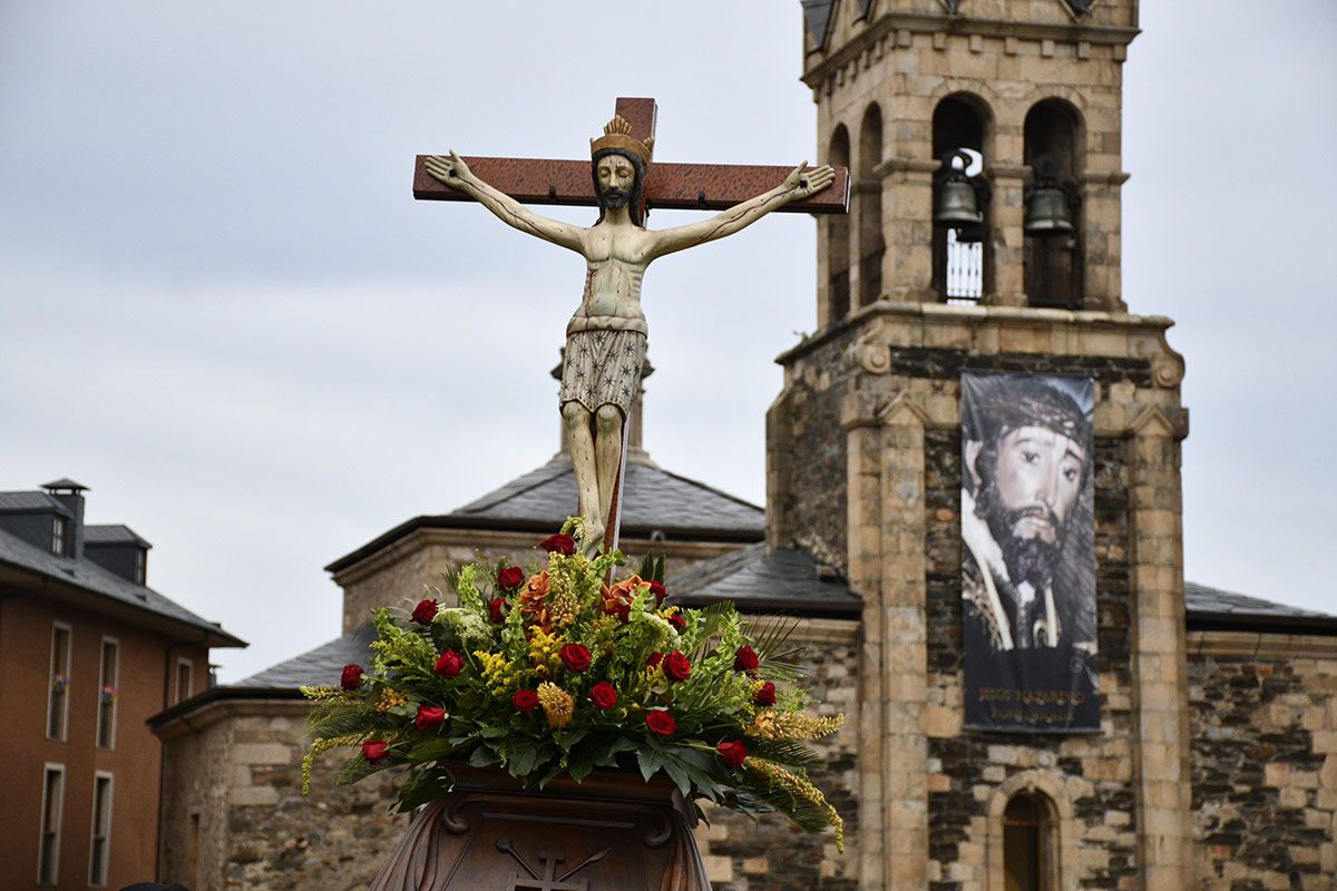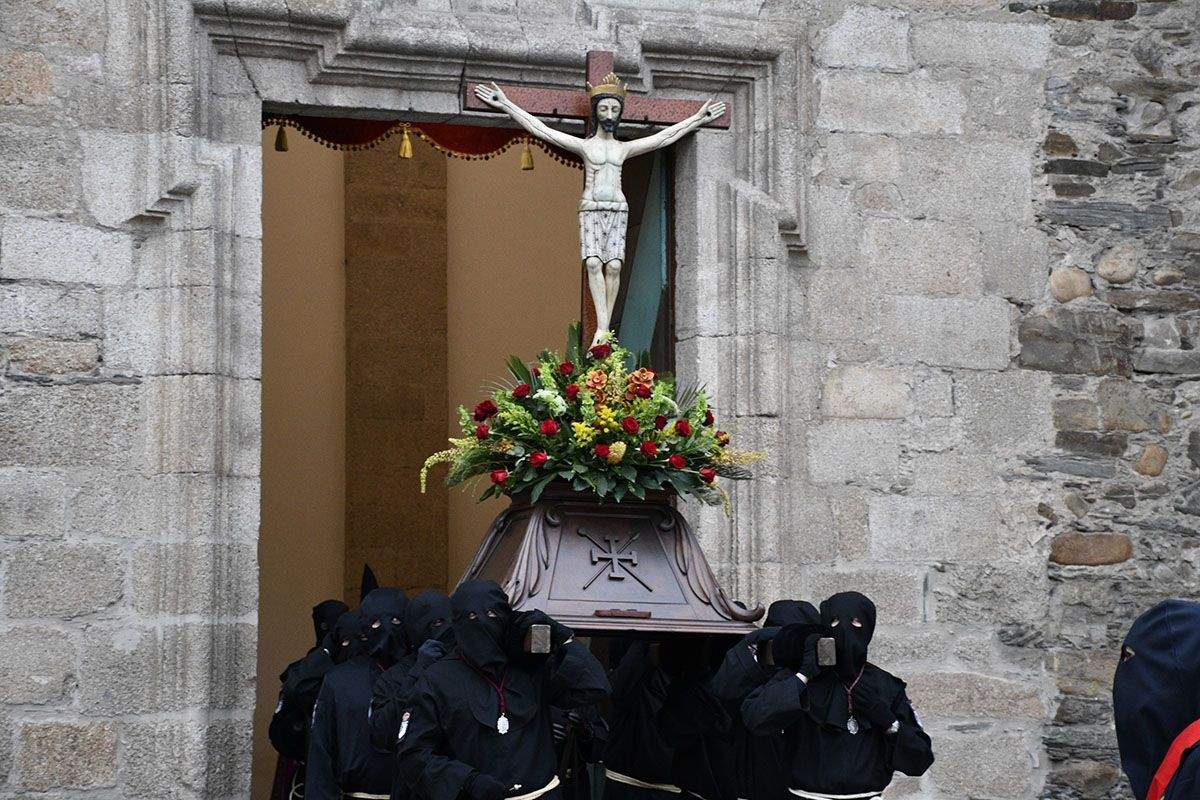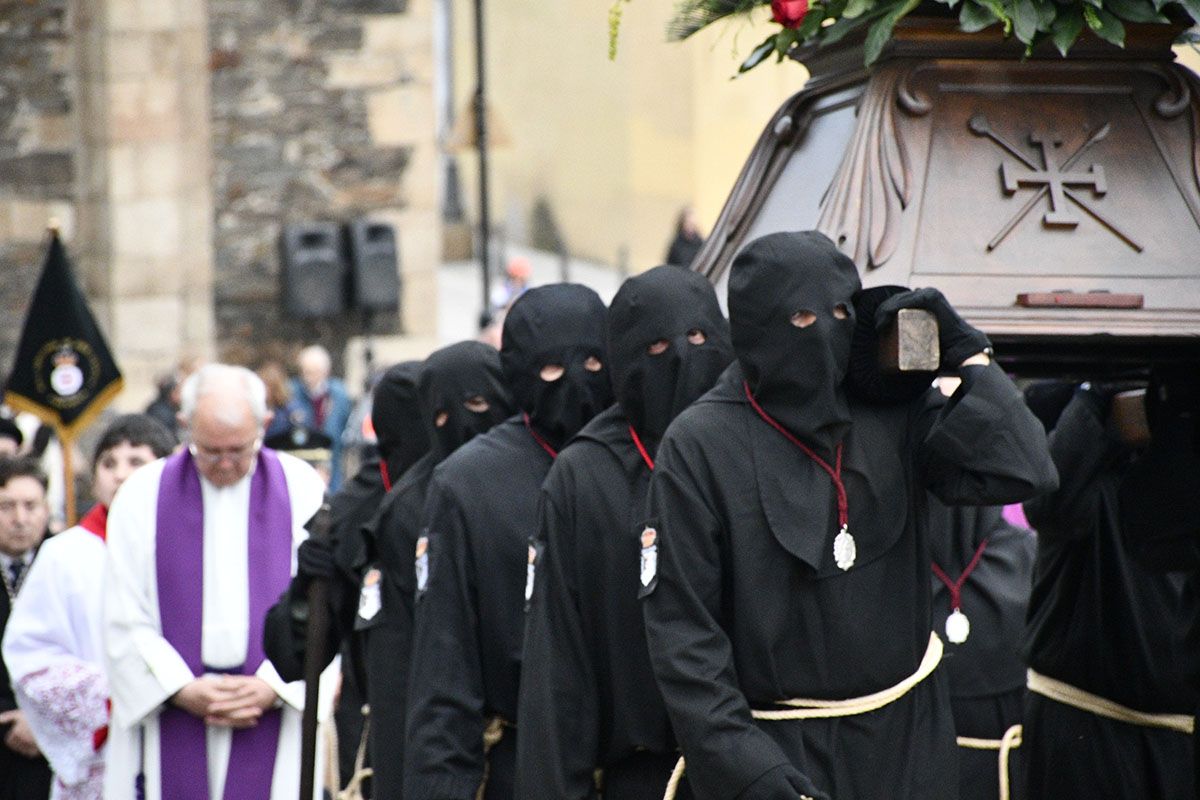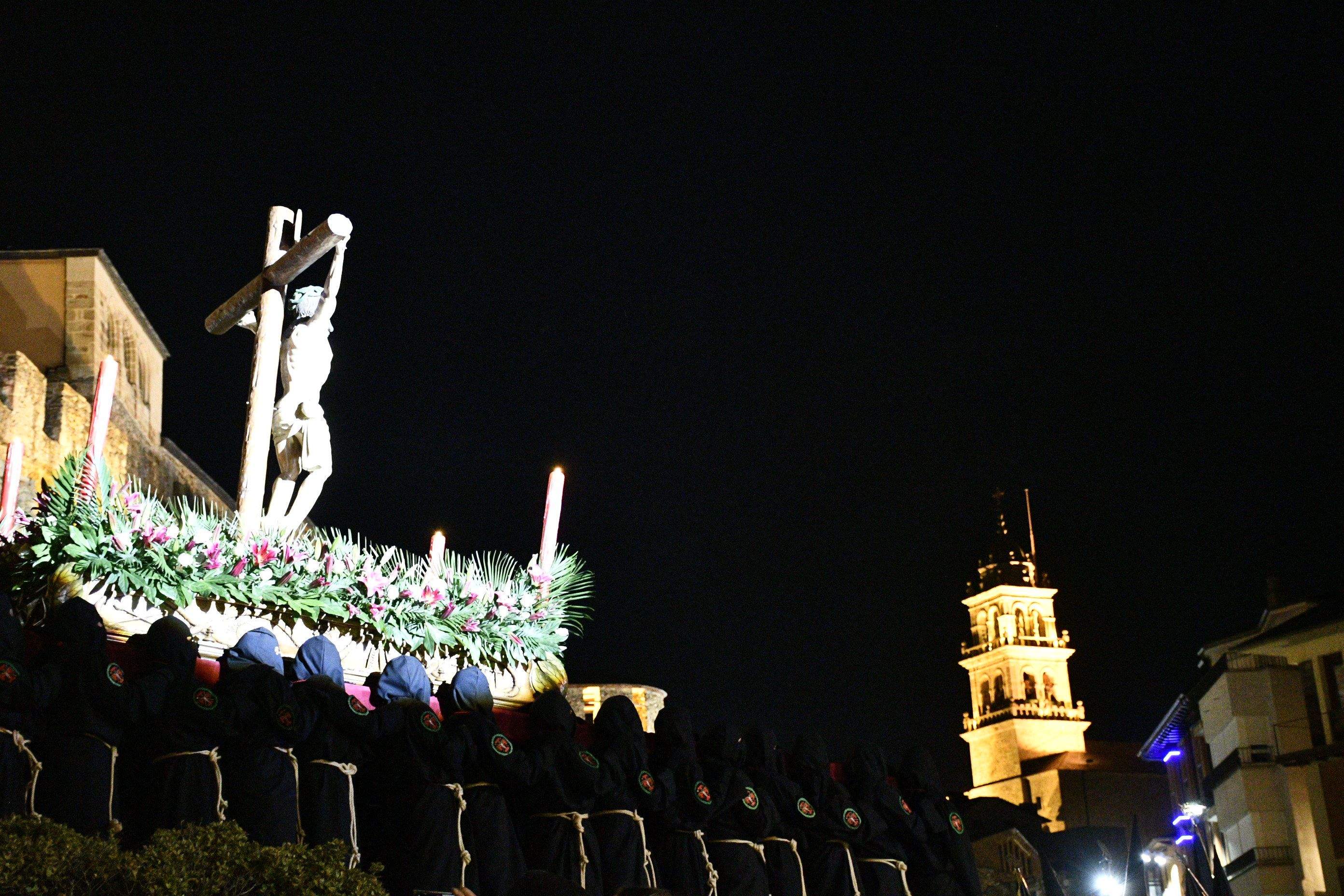 Esta procesión se recuperó hace nueve años, en 2014, con el objetivo de impulsar la declaración de la Semana Santa de Ponferrada como de Interés Turístico Nacional y que obtuvo al año siguiente. Su origen se remonta a los años 40 del siglo pasado y se desarrollaba por el casco antiguo de la ciudad con grandes cruces colocadas en algunas de sus fachadas. No había paso y era el mayordomo quien iniciaba el recorrido con un crucifijo de mano hasta la primera estación, cuando lo pasaba a otro de los hermanos que se iban alternando para llevarlo en las diferentes estaciones del Vía Crucis hasta finalizar otra vez en la basílica de La Encina.