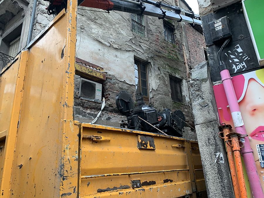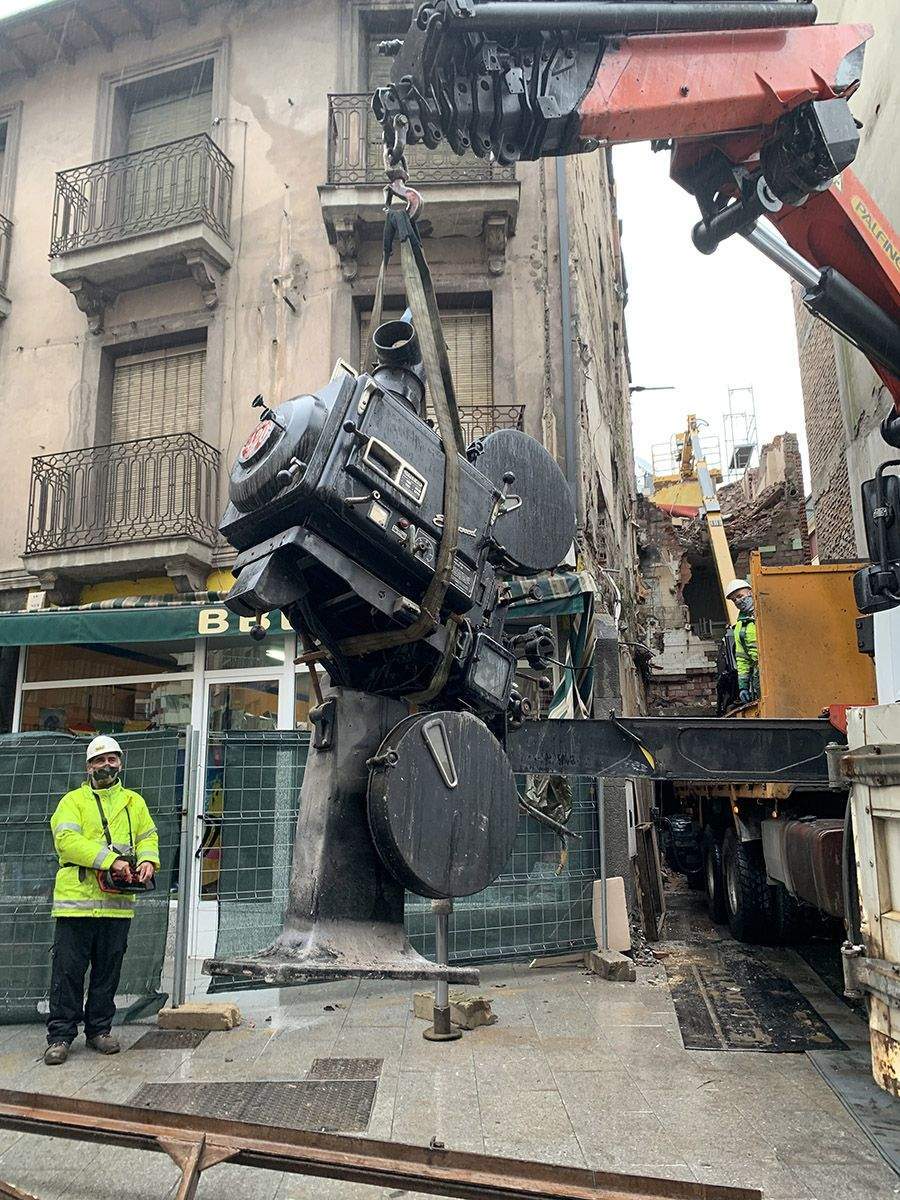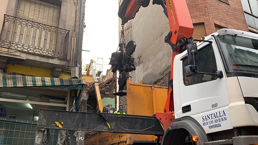 Los dos emblemáticos proyectores del Cine Adriano abandonaron este jueves sus ruinas para pasar al fondo patrimonial del Ayuntamiento de Ponferrada. Con esta extracción, se pone fin a la película de la que un día fue la gran Ponferrada del dólar.
