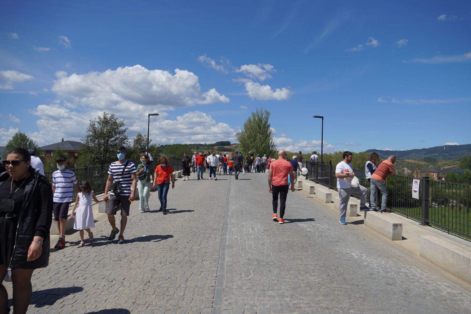Toda una avenida de 'vida' en Cacabelos por donde la 'riada' de personas ha fluido en las cercanías del río Cúa.