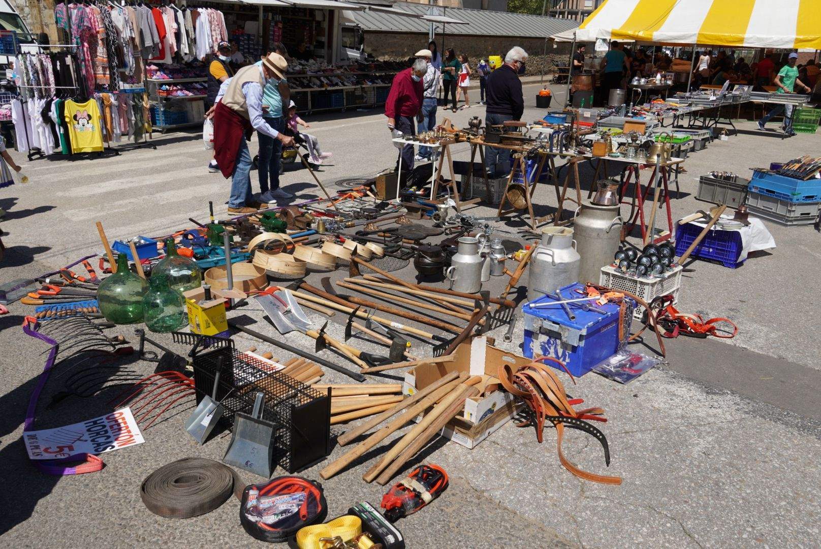 A los tradicionales puestos de aperos de labranza, maquinaria agrícola, antigüedades… se suman los textiles, calzado, complementos, y cómo no, las carpas de pulpería.