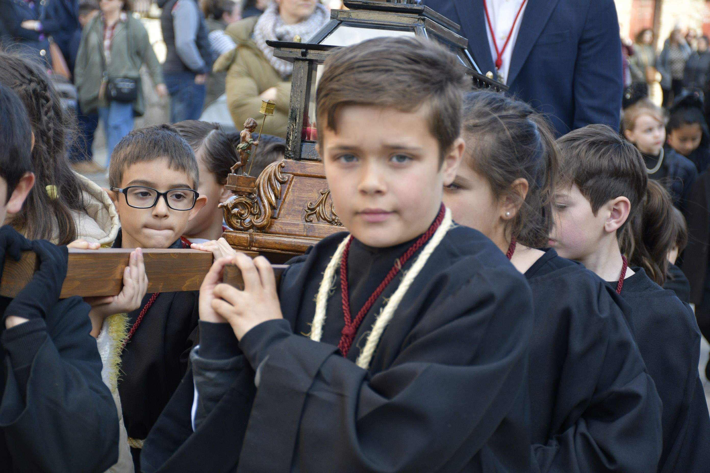 Las calles del Casco Antiguo de Ponferrada han vuelto a ser el escenario perfecto para que los más pequeños de la capital berciana se conviertan en los protagonistas de este sábado, dentro de la programación de la Semana Santa 2023, con la salida de la procesión de los minipasos dirigida por la Real Hermandad de Jesús Nazareno.