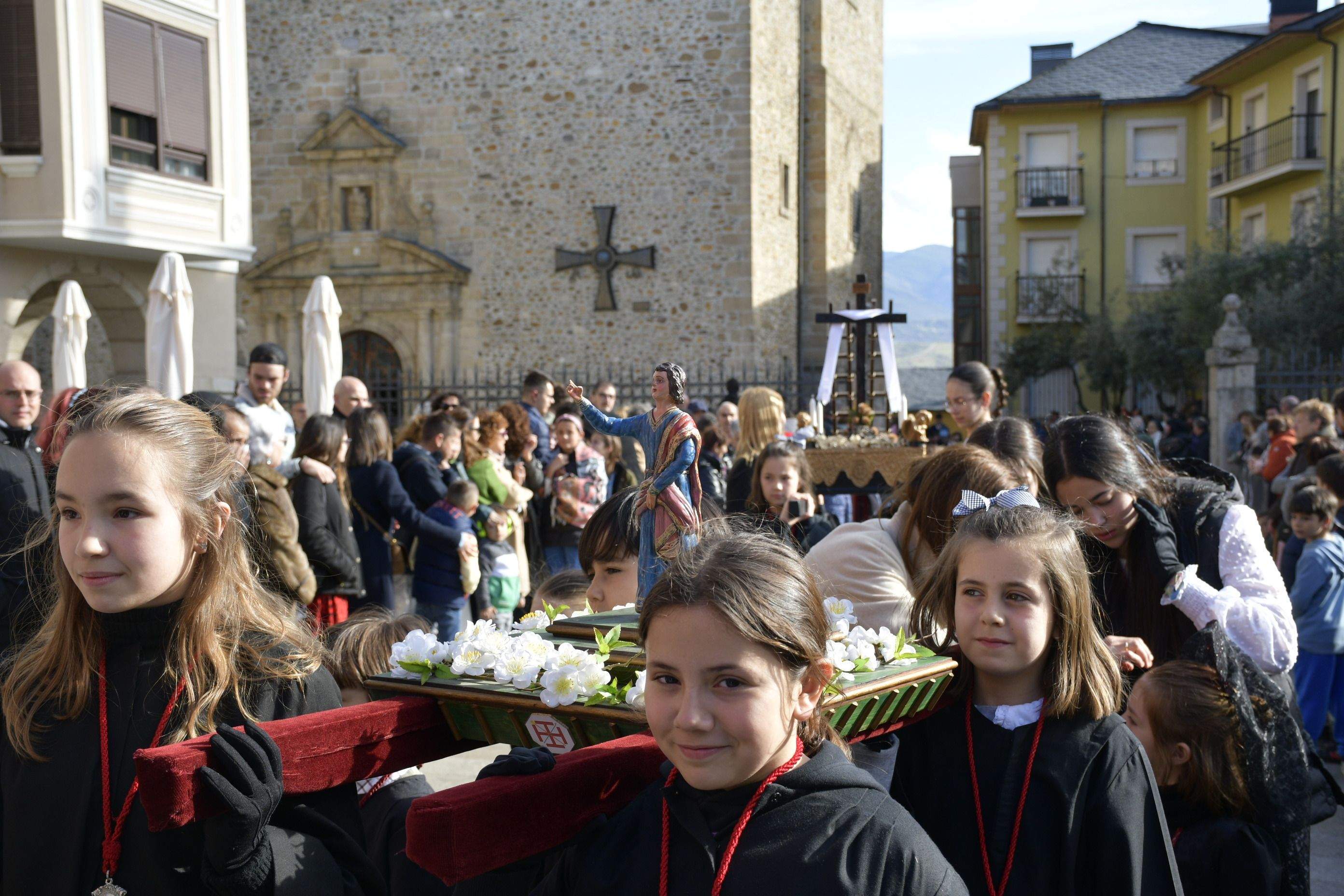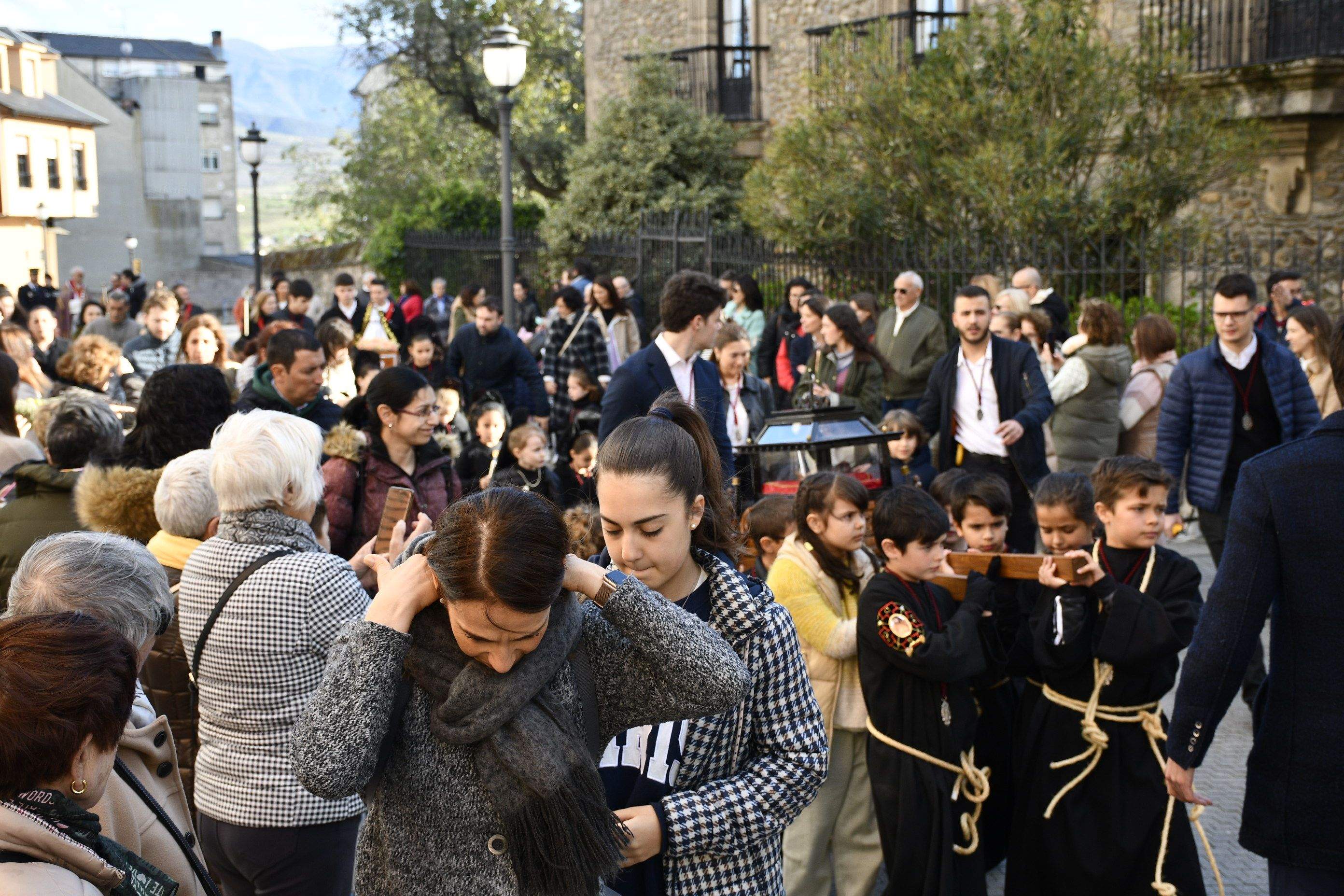 Aunque las nubes y los cielos parecían amenazar con lluvias, finalmente los más pequeños han podido disfrutar y empaparse de la vida cofrade. Desde mantillas hasta porteadores, que en un futuro serán el motor de la Semana Santa de Ponferrada.