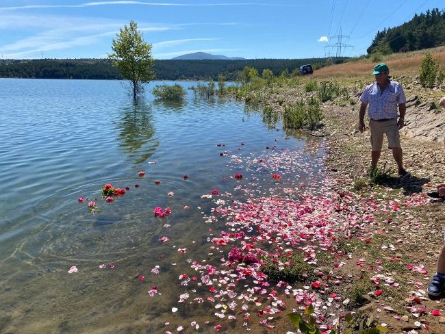 Así pues, los asistentes -respetando la rigurosa distancia de seguridad- han arrojado pétalos de rosa al pantano como marca su tradición. "A pesar del tiempo transcurrido, a pesar de la distancia, sigue estando con nosotros su añoranza, sigue estando el corazón muy herido, que con cada flor que depositamos sobre las aguas vaya con ellos nuestro cariño y descansen en paz", desearon antes de proceder a la ofrenda.