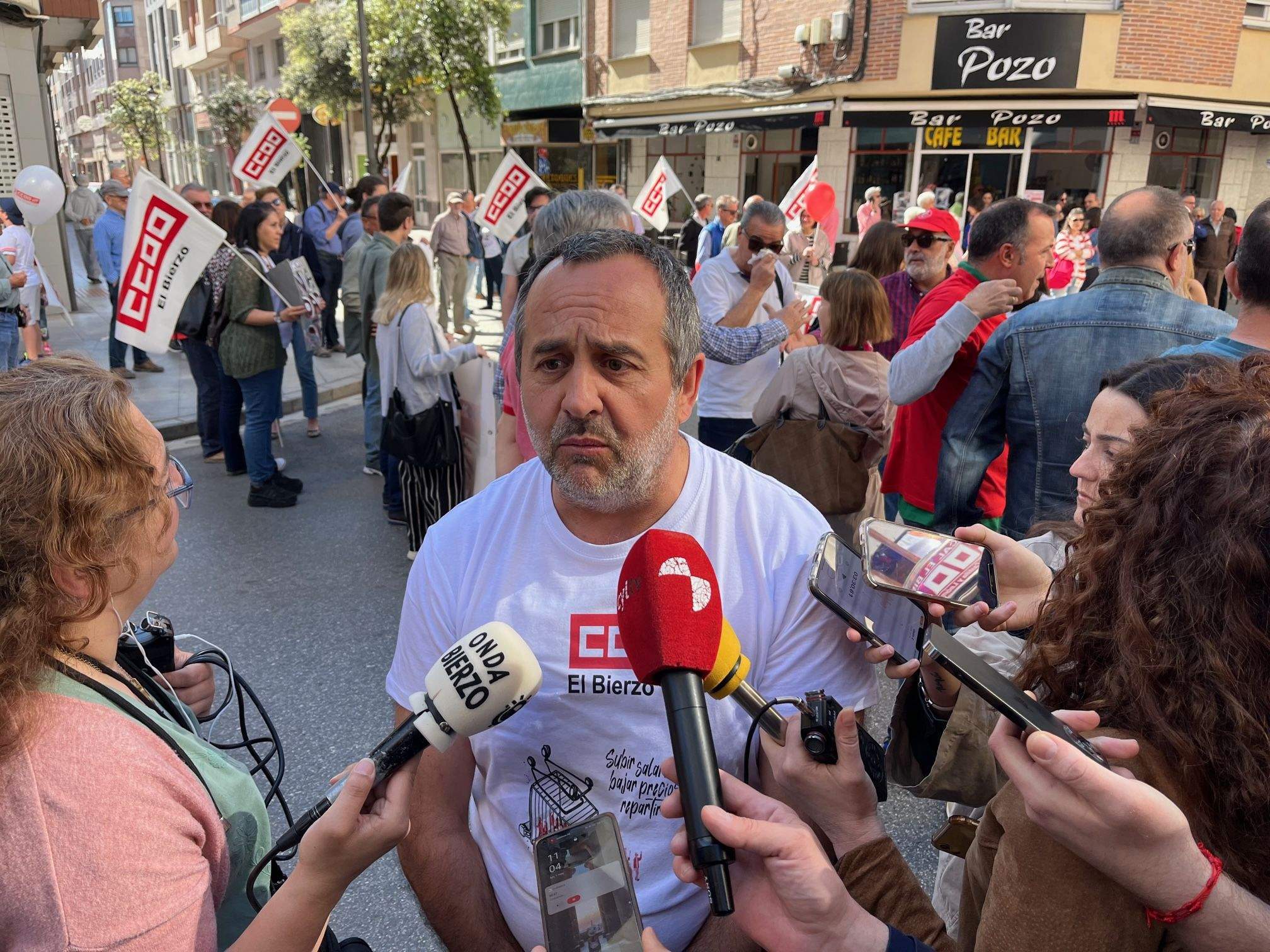 Ursicino Sánchez, secretario comarcal de CC.OOAl respecto, el secretario general de la UGT en El Bierzo, Omar Rodríguez, sostiene que "es un día para poner en valor los acuerdos que se han conseguido estos últimos años en materia social y laboral a nivel estatal" aunque en términos autonómicos, Rodríguez señala "que es imposible llegar a ningún acuerdo que beneficie a los trabajadores y trabajadoras". Además, Rodríguez ha puesto en valor "el acuerdo de negociación colectiva estatal. Un primero de mayo para reivindicar que se vuelva a la senda de negociación, en términos de negociación colectiva para que los trabajadores vuelvan a recuperar el poder adquisitivo". En términos comarcales, los proyectos que se siguen reclamando, en palabras de Omar Rodríguez, son "el nudo de Manzanal, efectivo la conexión con Galicia por Ourense o el Corredor Atlántico" además de reivindicar el proceso para "convertir El Bierzo en una zona atractiva para las empresas".