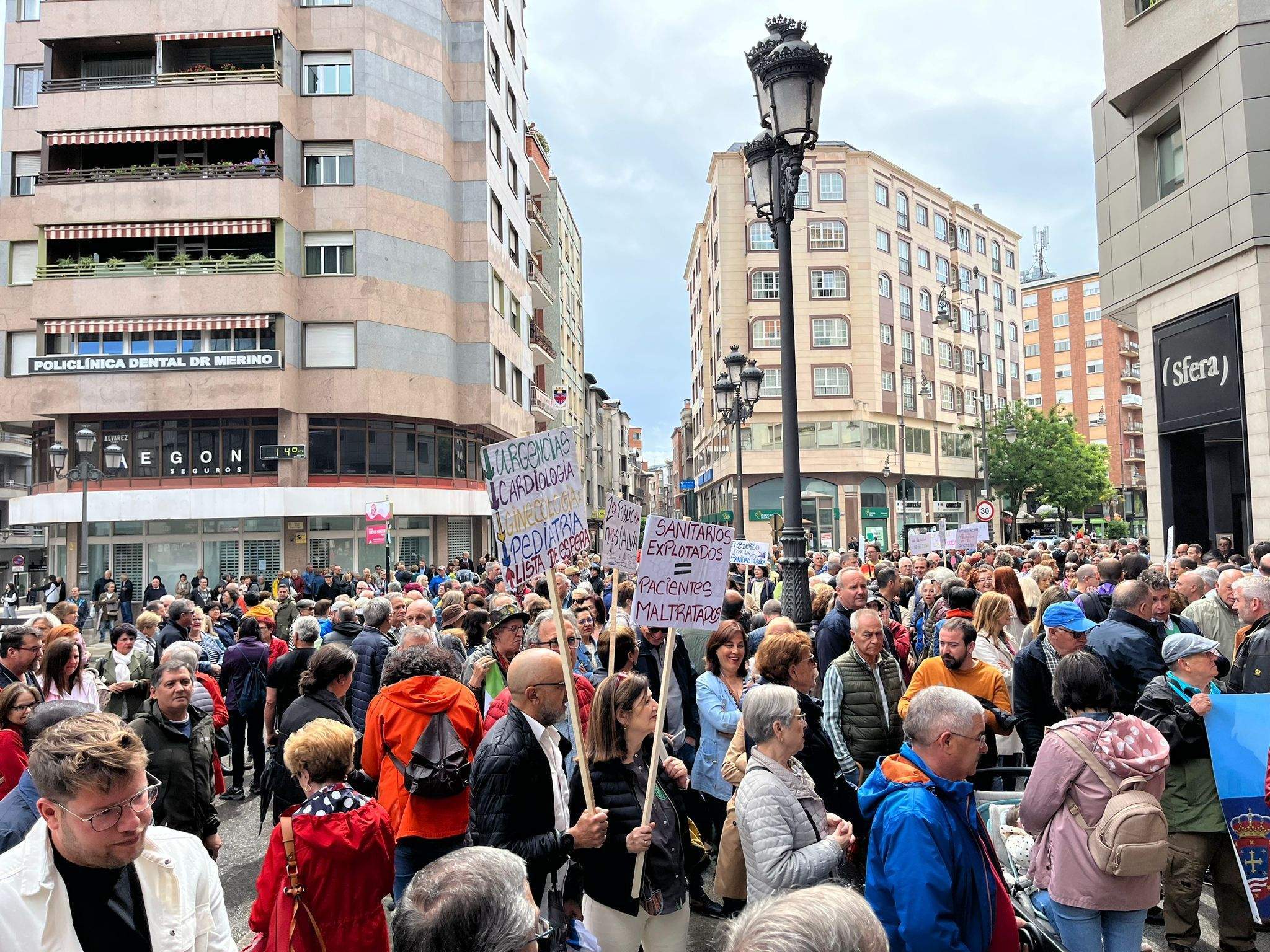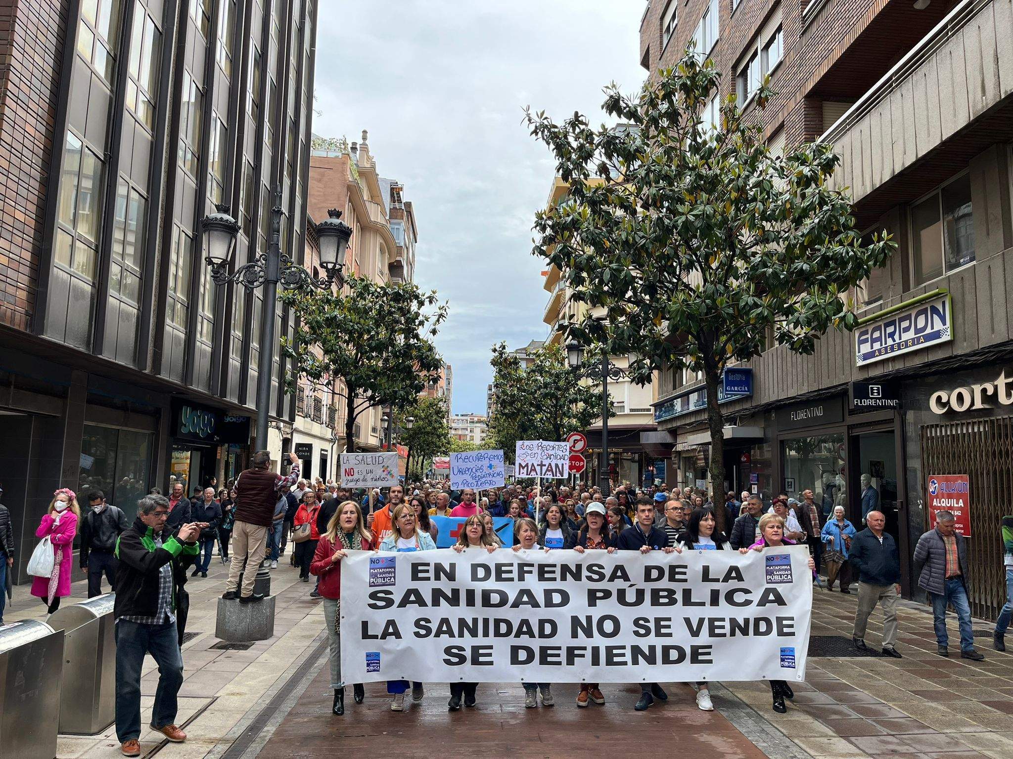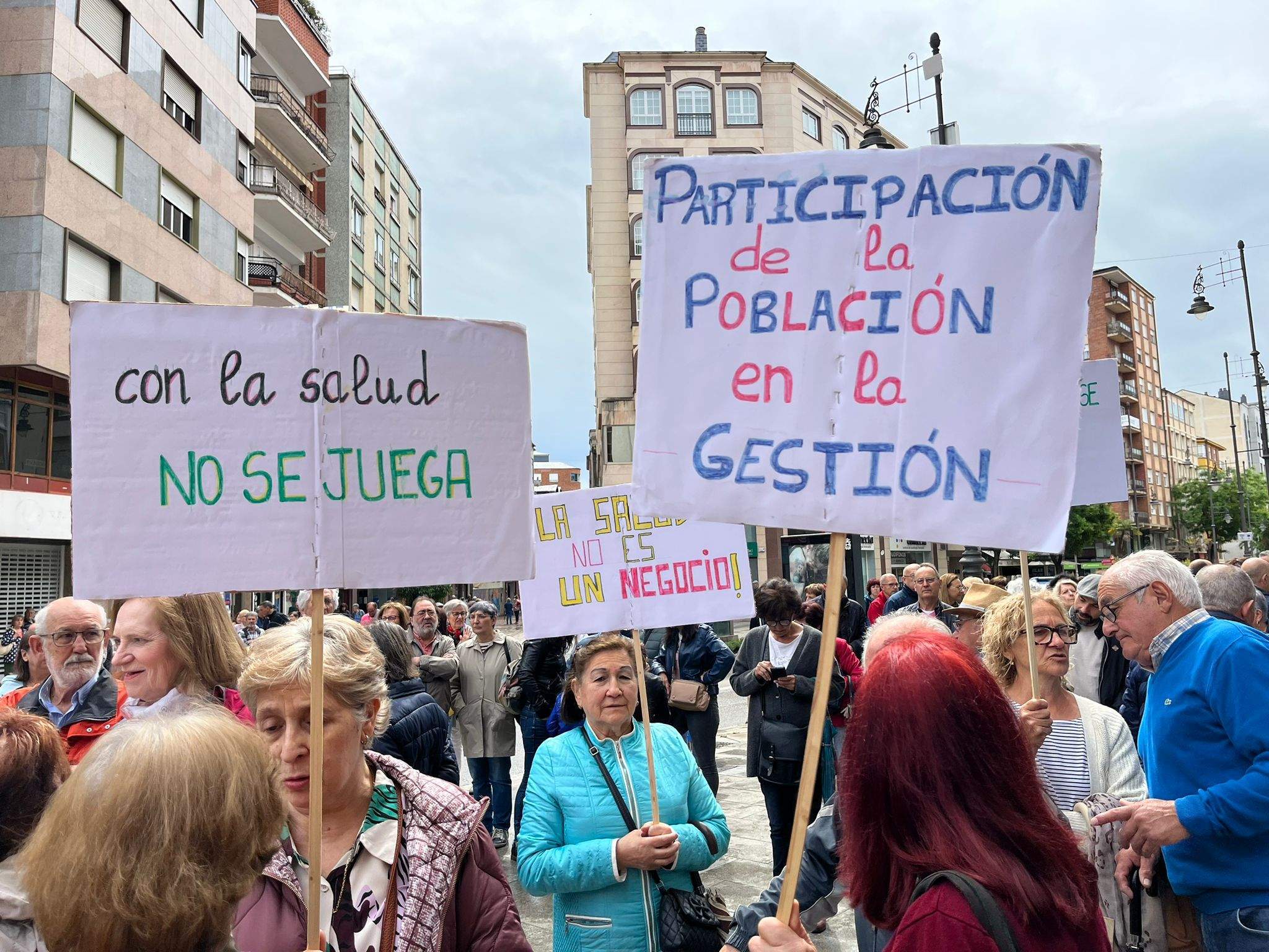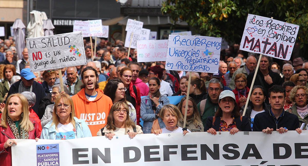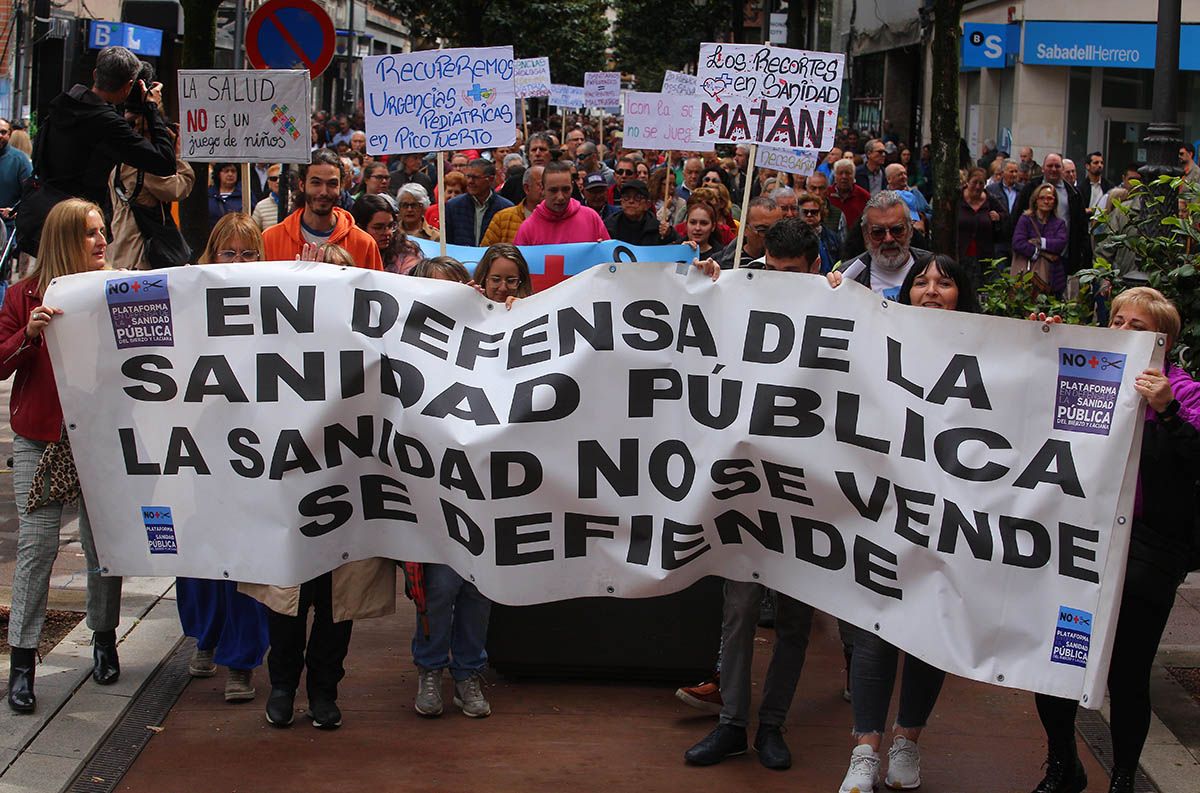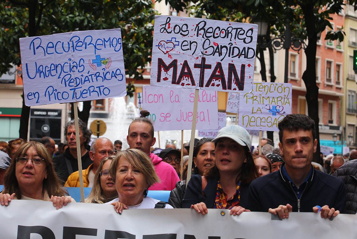 Aunque en varias capitales y ciudades de la Comunidad, en la capital berciana ha contado con la presencia de sindicatos, políticos, y cientos de vecinos que encabezados por la Plataforma han solicitado el "regreso de las urgencias pediátricas a Picotuerto", que "se deje de externalizar servicios con conciertos público-privados como el caso de los rayos, o en un futuro cercano, de la radioterapia, que se cubran las plazas vacantes y se palie la escasez de profesionales sanitarios" y que "el consejero de Sanidad, Alejandro Vázquez, dimita".