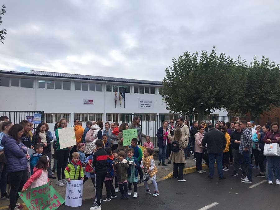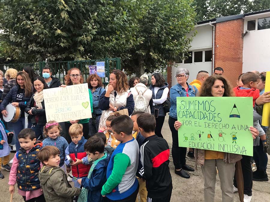 La familia de Valeria, alumna de 4 años del Colegio La Borreca de Ponferrada diagnosticada con sintomatología TEA (Trastorno del Espectro Autista), ha estado arropada este lunes por más de un centenar de personas que a las puertas del centro, han reclamado una auxiliar, una figura docente, que acompañe a la pequeña en su jornada lectiva para que "pueda desarrollarla con normalidad".