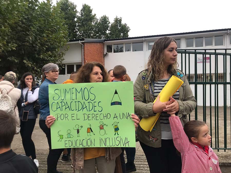 El enfado y hartazgo por esta situación era palpable entre los asistentes a la concentración que han afeado a los políticos su postura en este asunto. Entre gritos de "no es un capricho, es una necesidad" los padres de los otros niños del centro arropaban a la familia de Valeria, que hacía hincapié en la importancia que tiene esta figura auxiliar para la niña, pero también para sus compañeros. Y recriminaba las 'falsas' políticas "de inclusión de niños con necesidades especiales", que luego no se llevan a la práctica al darse situaciones como esta.
