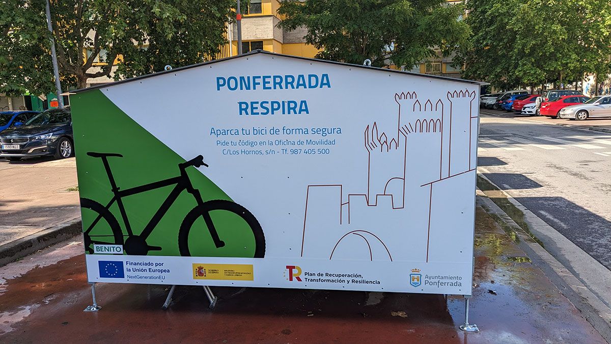 Ponferrada sigue rondando y avanzando hacia la versión Ponferrada 4.0, y lo hace con la instalación de nuevos aparcamientos para bicicletas. El Ayuntamiento está instalando los más sencillos y tradicionales, las barras donde enganchar la bici con el candado, pero también una versión mucho más moderna en la que las bicicletas están cubiertas y cerradas en un pequeño aparcamiento que tiene incluso una llave de código numérico para desbloquear la cerradura y acceder al aparcamiento.
