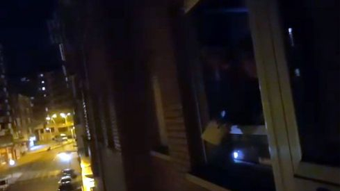 El joven Álex, sale cada noche a amenizar la noche que empieza a caer sobre este popular barrio de Ponferrada, tras los 2 minutos de aplausos