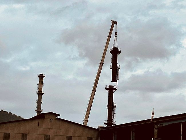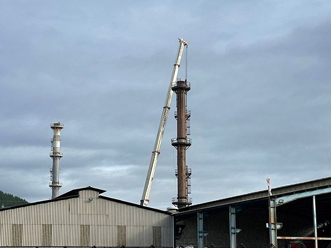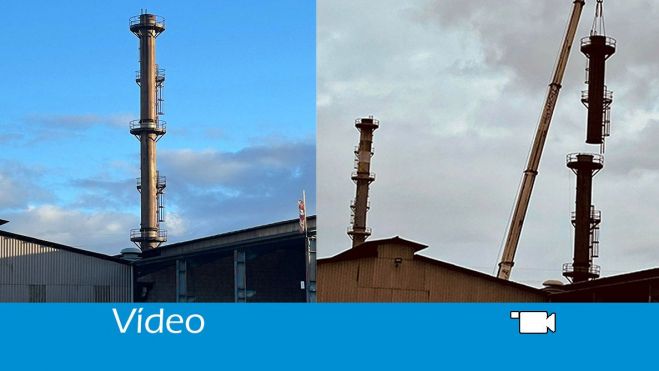 La acerera de Roldán en Santo Tomás de las Ollas (Ponferrada) ha comenzado los trabajos de desmontaje de una "antigua chimenea" en "desuso", perteneciente al antiguo "tren de laminación", tal y como confirma a este medio la propia empresa. Unas tareas que dejarán desmontada la infraestructura este mismo viernes, y que ya se puede observar semidesmontada.