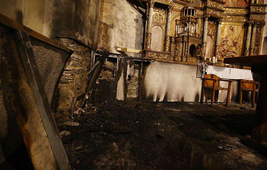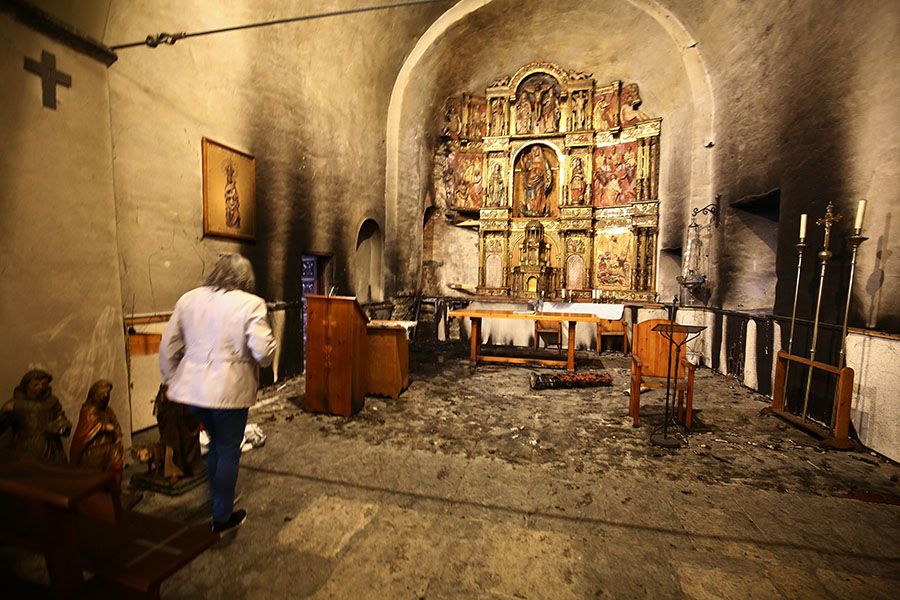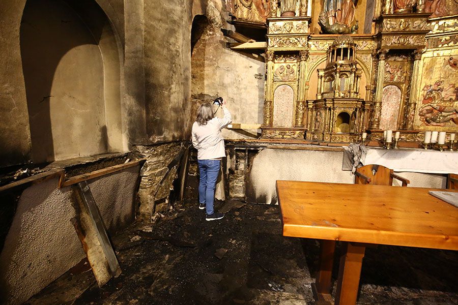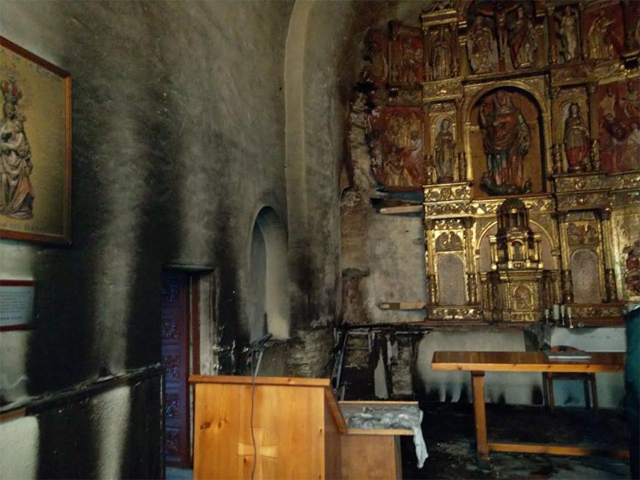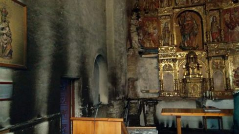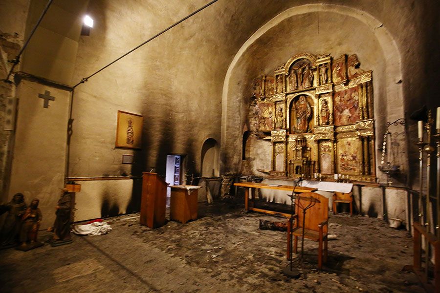 Para acceder al interior los bomberos tuvieron que "forzar la puerta de entrada, ya que la nave de la iglesia está totalmente inundada de humo y el incendio afecta a la parte izquierda del retablo mayor en toda la vertical, unos 3 metros y con una anchura de 1 m aproximadamente". Asimismo, afecta al zócalo inferior y a la alfombra del altar.