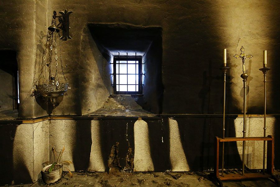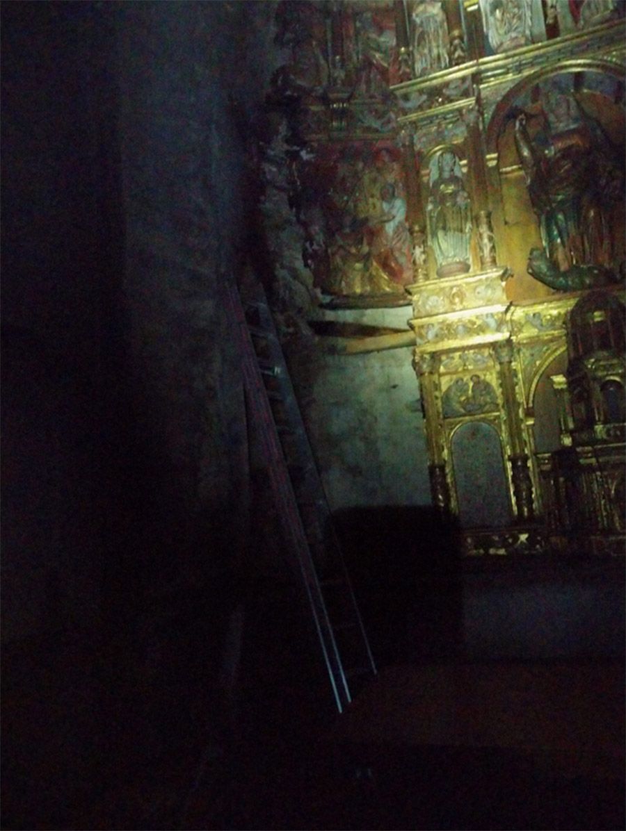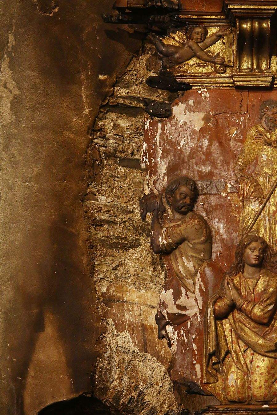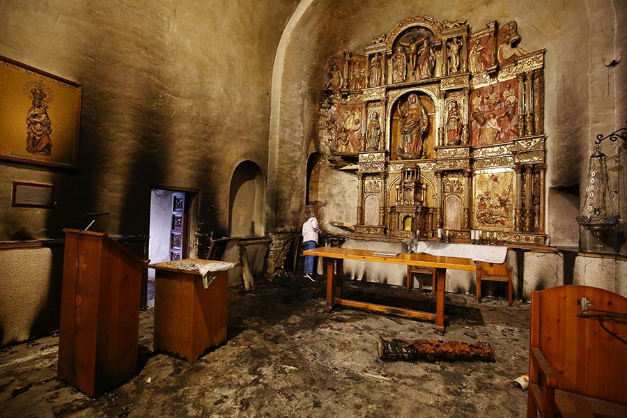 Para acceder al interior los bomberos tuvieron que "forzar la puerta de entrada, ya que la nave de la iglesia está totalmente inundada de humo y el incendio afecta a la parte izquierda del retablo mayor en toda la vertical, unos 3 metros y con una anchura de 1 m aproximadamente". Asimismo, afecta al zócalo inferior y a la alfombra del altar.