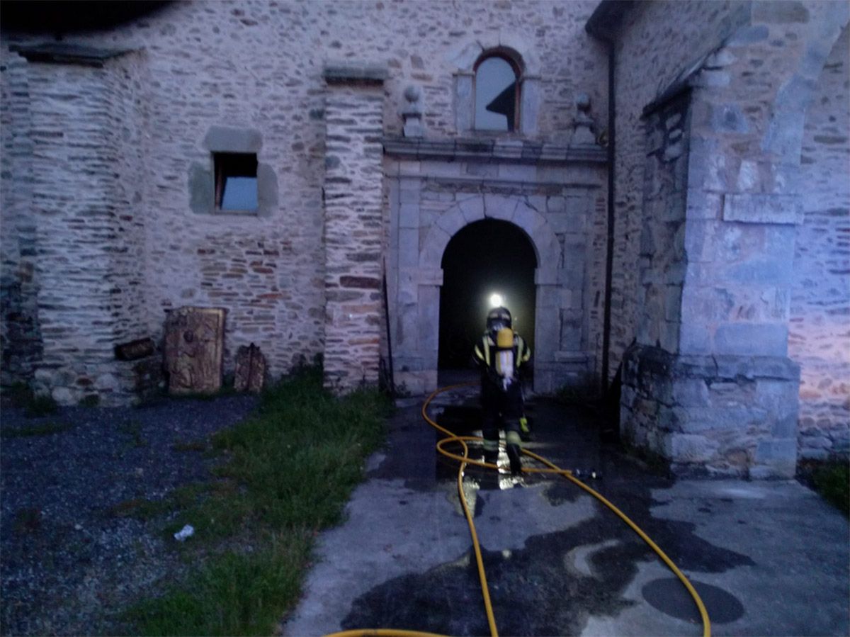 Desde el parque de Bomberos de Ponferrada se desplaza un retén con una Autobomba Ligera y una Autobomba aljibe, al encontrarse la Autobomba Rural en el taller. Al llegar comprueban que sale humo por las ventanas del templo.