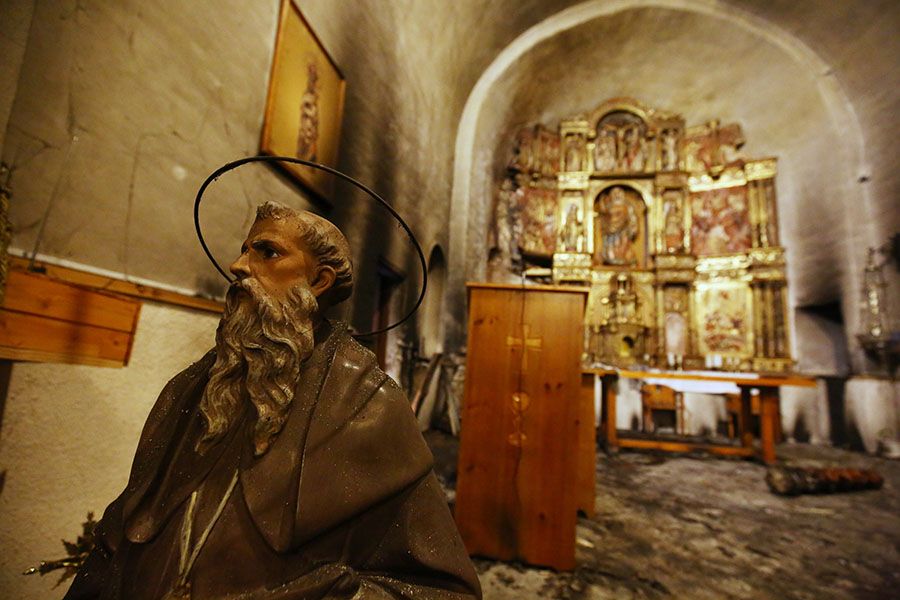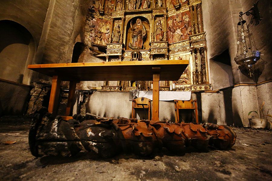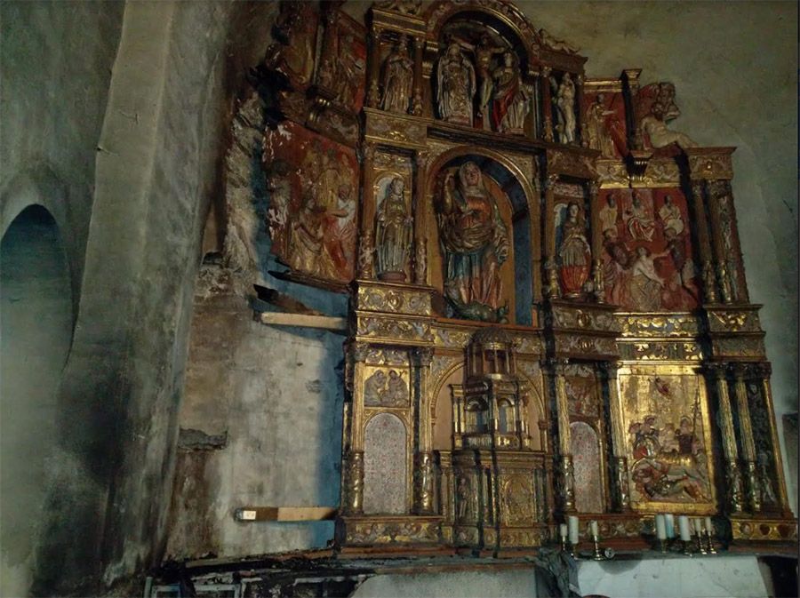 Un incendio calcina el retablo mayor de la Iglesia de Balboa del siglo XVI