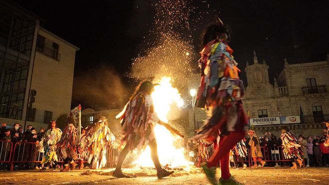 Así, las calles de Ponferrada se volvieron a llenar de harina, plumas, toques de gancha de palo, y cascara de huevo, que sufría algún viandante al paso del tradicional ‘entroido berciano’, en un viaje en el tiempo a las antiguas celebraciones carnavalescas de la comarca. De la mano del grupo Alegría Berciana, este año también ha contado con animación musical en diferentes puntos del recorrido. Una vez llegado a la Plaza del Ayuntamiento, esta celebración pagana ha finalizado con la quema del “antruejo” y “los fachos”, más la animación musical.