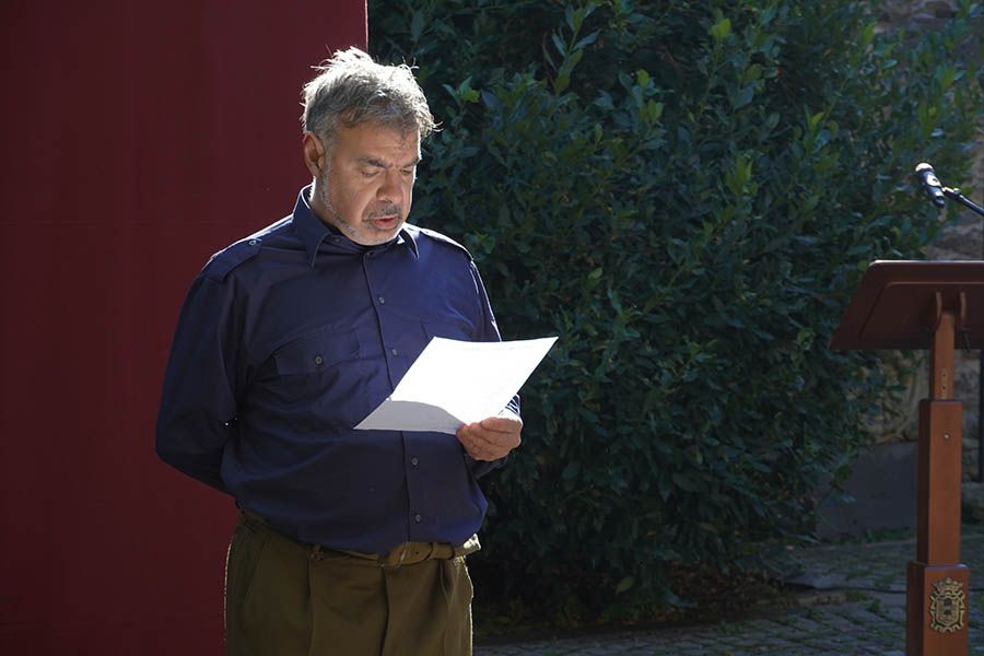 Explica que la Recuperación de la Memoria Histórica es un "deber del país y de la sociedad entera para con la sociedad entera" y hace alusión a la ausencia del Partido Popular dirigiéndose al público con "enorme tristeza como alcalde por las ausencias, y el agradecimiento por las presencias".