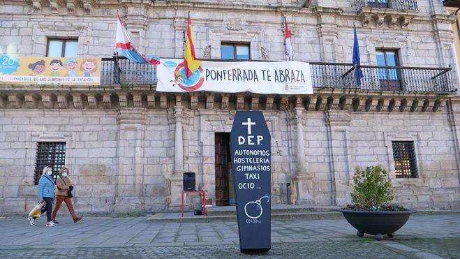 Este fin de semana han dejado un ataud a las puertas del Ayuntamiento "por unos sectores, trabajos y trabajadores que se van a quedar muertos en esta ciudad, sin empleo".