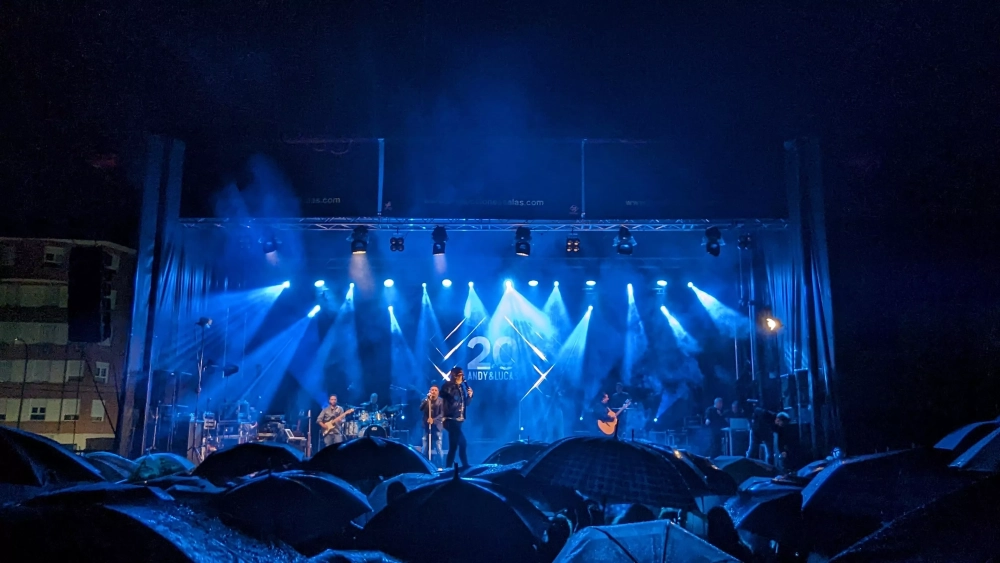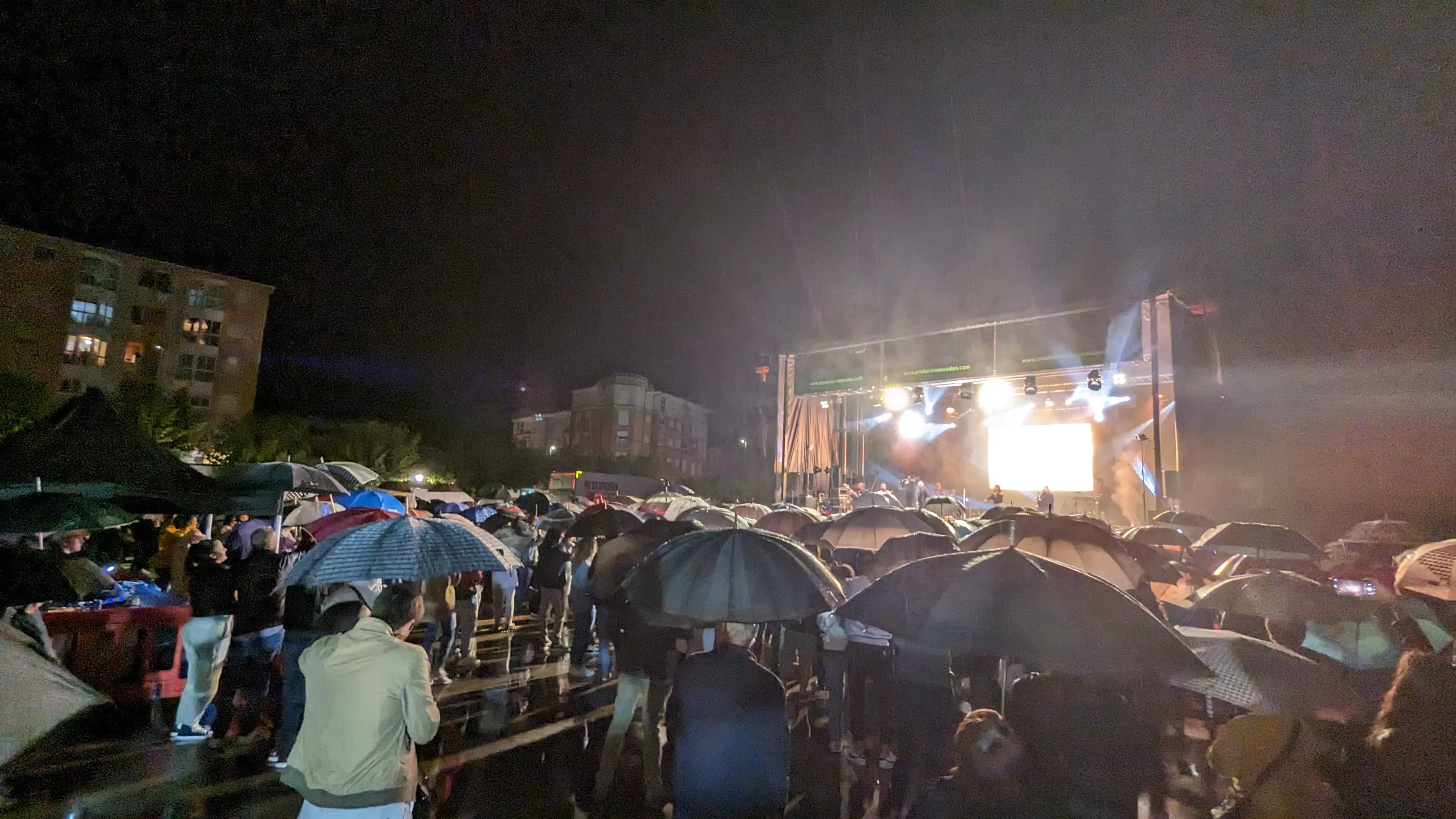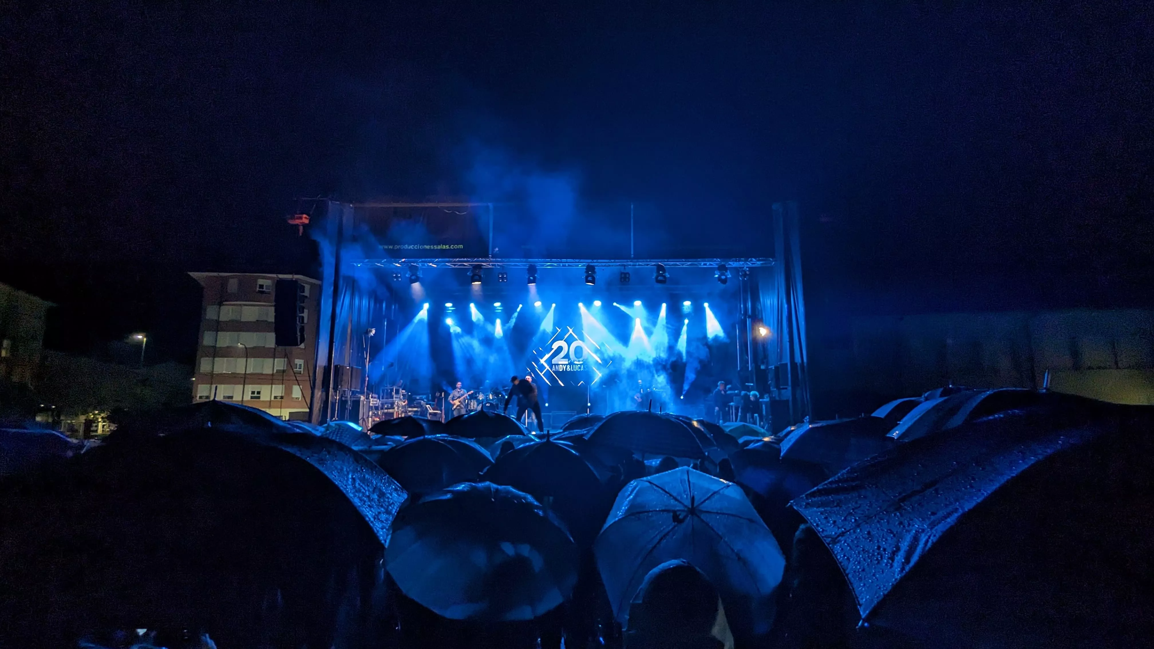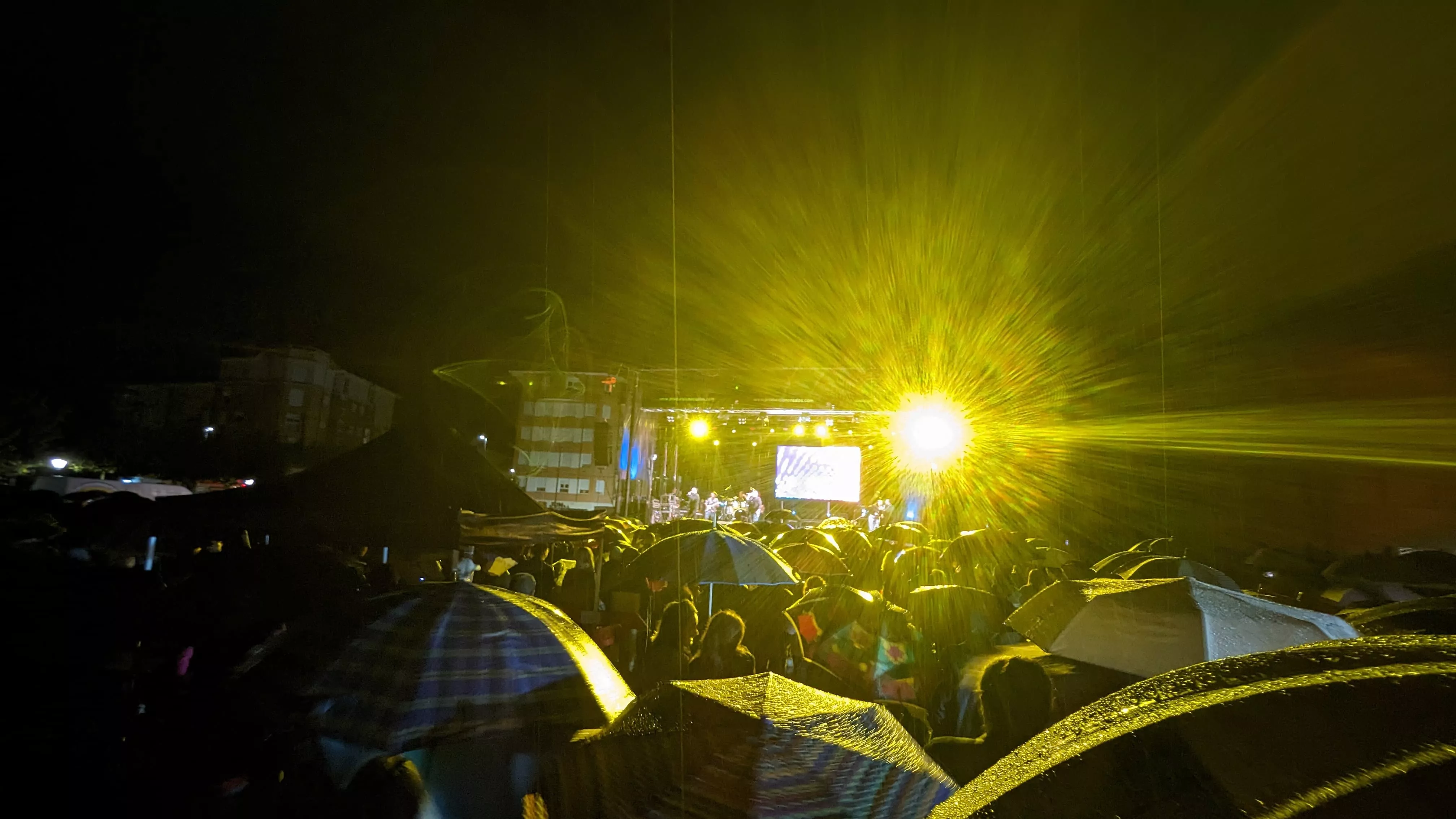 No podían faltar ‘Son de Amores’, 'Tanto la quería', ‘Aquí Sigo Yo’, ‘Pido la palabra’ y ‘El Ritmo de las Olas’, durante el concierto no cantaron solos, les acompañaban los bercianos reunidos en el patio del colegio Virgen de la Peña, aunque entre paraguas, la lluvia no les impidió disfrutar de una de las noches grandes de las Fiestas del Cristo.