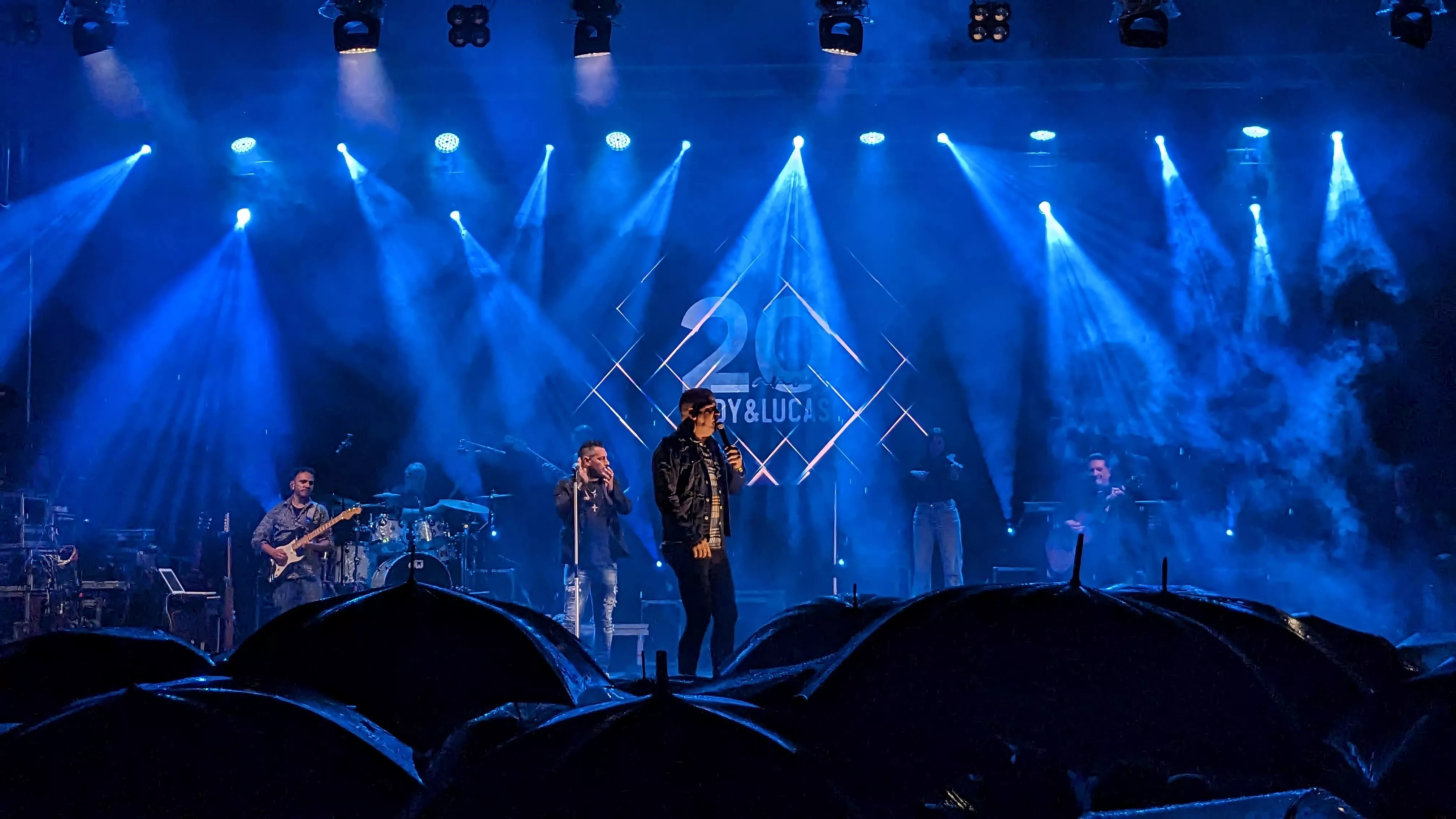 El dúo gaditano ‘Andy & Lucas’ celebró en Bembibre uno de sus conciertos de la ‘Gira 20 años’. Un público entregado, pese a la intensa lluvia, se rindió a las canciones más relevantes que han tenido repercusión dentro y fuera de nuestras fronteras.