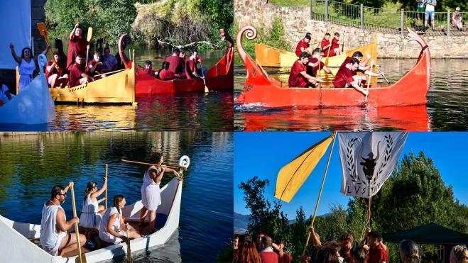 Cacabelos ha protagonizado este domingo una vertiginosa batalla naval al más puro estilo romano en el Cúa. A esta dura batalla han acudido 6 embarcaciones, "cada una con su respectiva tribu", que han realizado 4 pruebas en las que se ha podido comprobar la experiencia de los navegantes. La primera prueba en la que se evaluaba la velocidad, una segunda consistente en tiro con 'pilum' (el arma básica del soldado legionario) a casco romano, y quizás una de las más entrenidas de la jornada. La diversión ha continuado con la prueba de los aros, en la que las embarcaciones debían transportar estos elementos de una orilla a otra. Y para rematar el día una recogida de huevos en la que los participantes capturaban estos objetos en el agua. Por último, se ha anunciado los vencedores de esta disputada batalla naval, que ha sido la tribu de Lusitania.