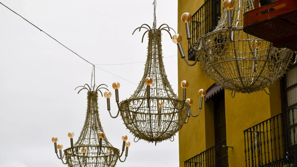 Este año, la iluminación contará con novedades, como las que ya cuelgan en la calle Gil y Carrasco. Unas 'lámparas de araña' que no se habían visto antes en Ponferrada y que le darán -una vez encendidas- un 'toque señorial' a esta importante calle del casco urbana.