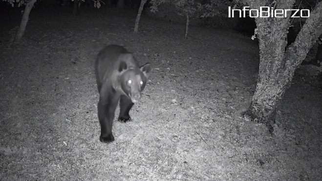 La víspera de Halloween ha traído una visita inesperada -y ya conocida- al Alto Sil. Posiblemente por su tamaño el mismo ejemplar de oso pardo que el pasado 9 de octubre fue grabado en una finca privada de Páramo del Sil ha vuelto a dejarse ver en el mismo lugar, donde campó a sus anchas en busca de comida antes de marcharse sin causar daños. El suceso, captado nuevamente en vídeo por los vecinos, reaviva la atención sobre la presencia del plantígrado en zonas próximas a los núcleos habitados.