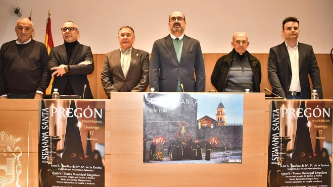 El alcalde de Ponferrada, Marco Morala, invitó hoy a los ponferradinos y a los visitantes a disfrutar de la Semana Santa de la capital del Bierzo, declarada de Interés Turístico Nacional, y hacerlo mirando en cuatro puntos: “Hacia el interior, por el recogimiento propio de esta fecha; hacia el exterior porque es una fiesta; hacia arriba, porque es religiosa, y hacia atrás para recoger y transmitir la tradición a las futuras generaciones”.