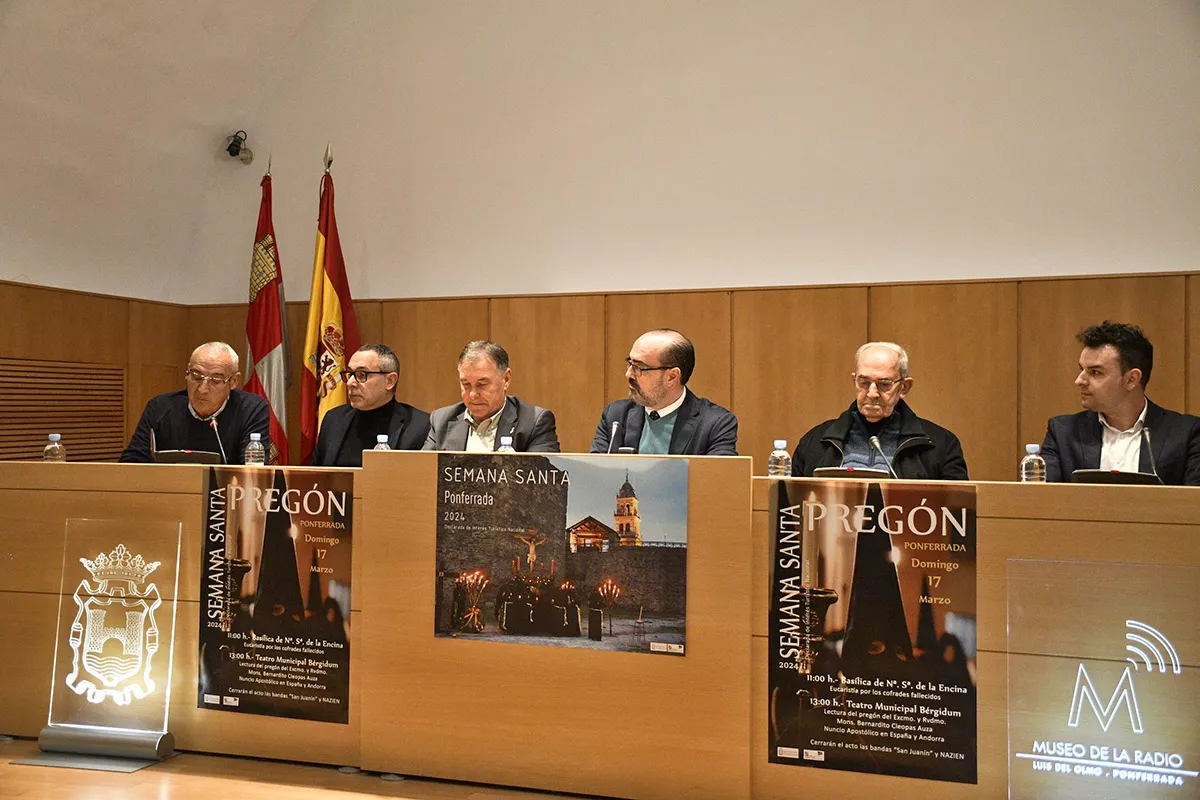 El alcalde estuvo acompañado por los representantes de las cofradías y hermandades de la ciudad, quienes repasaron las citas que organiza cada una de ellas. Por parte de la Real Hermandad de Jesús Nazareno, la más antigua y la que más actos organiza, recordaron que este sábado, 9 de marzo, tendrá lugar el concierto de Semana Santa en el Teatro Bérgidum, a cargo de la Banda de Música Ciudad de Ponferrada y a beneficio del Hogar del Transeúnte y Comedor Social ‘San Genadio’. Ya, el sábado 16 de marzo saldrá el Lambrión, a las 16.30 horas, y el domingo, 17 de marzo, a las 13 horas, en el Teatro Bérgidum tendrá lugar el pregón a cargo del nuncio Apostólico del Papa en España, Bernardito Auza.