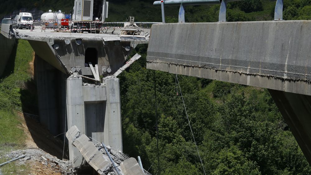 Derrumbe de parte del viaducto del Castro en el municipio de Vega de Valcarce VÍDEO