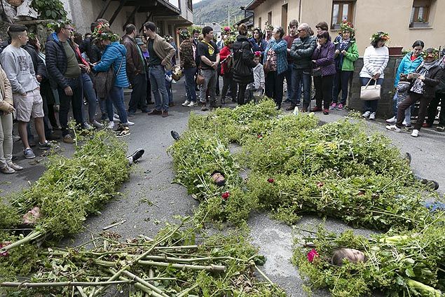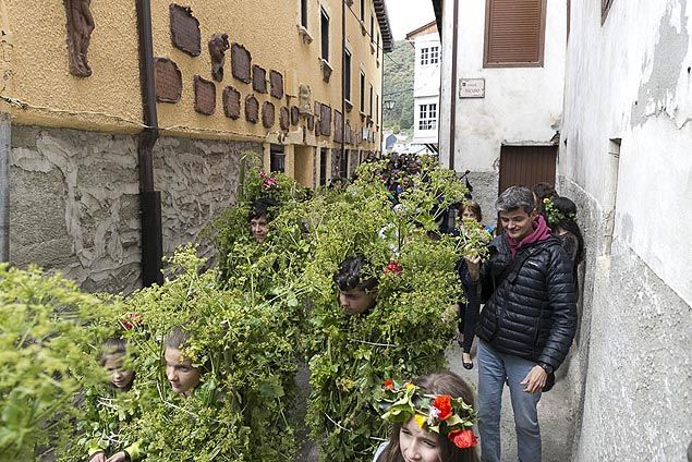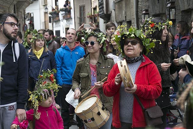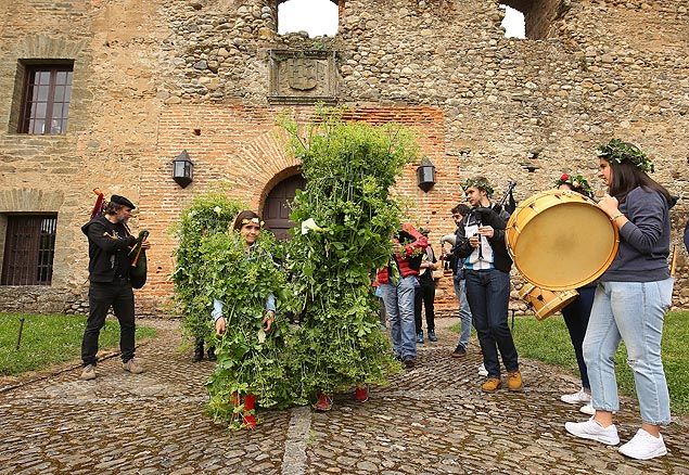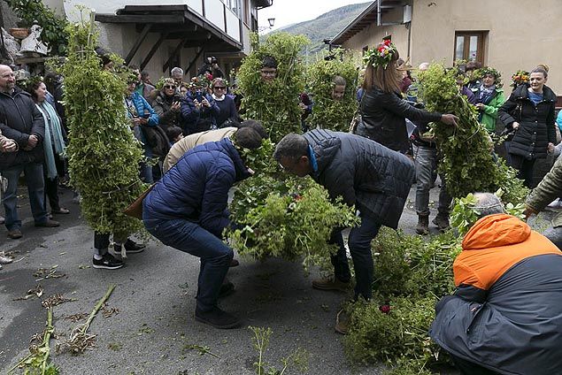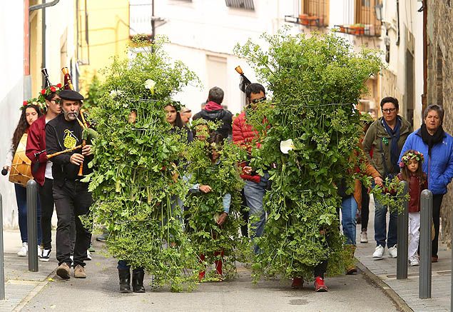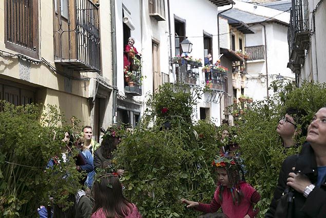 Desde primera hora de la mañana, y partiendo desde Campo da Galiña, As Veigas Altas, Socubo y el barrio de la Cábila, diferentes grupos de pequeños y no tan pequeños, vestidos de 'maios' con 'cañaveiras' y coronas de flores, han desfilado junto a los integrantes de la Escola de gaitas por las calles de la Villa del Burbia. Los 'maios' se han tumbado por las calles para levantarse al ritmo de 'Levántate maio bastante dormiche, pasa un burro e non o sentiche', la popular canción que les acompaña durante este día.