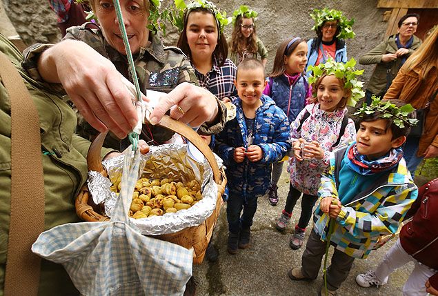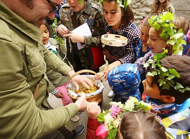 El paso fue reclamando en los balcones de las viviendas, castañas, caramelos o monedas a las “doncellas” y “cabaleiros”, o reprender a las “roñosas” o “zampostas”.
