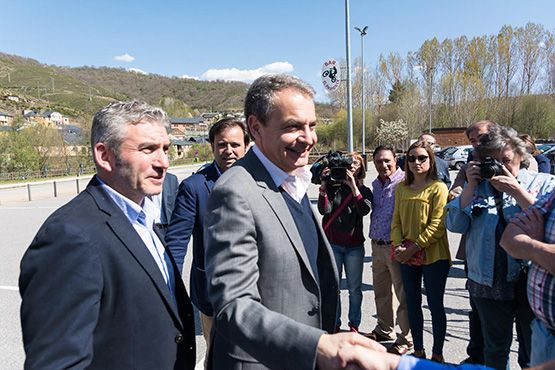 César Sánchez / ICAL El ex presidente del Gobierno José Luis Rodríguez Zapatero (D), junto al alcalde de Igüeña (León), Alider Presa (I), durante el comienzo de su visita a la comarca del Bierzo esta mañana
